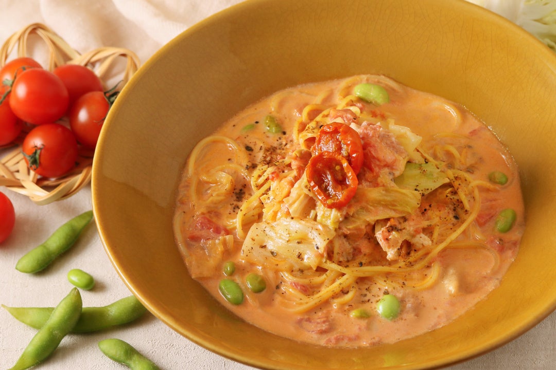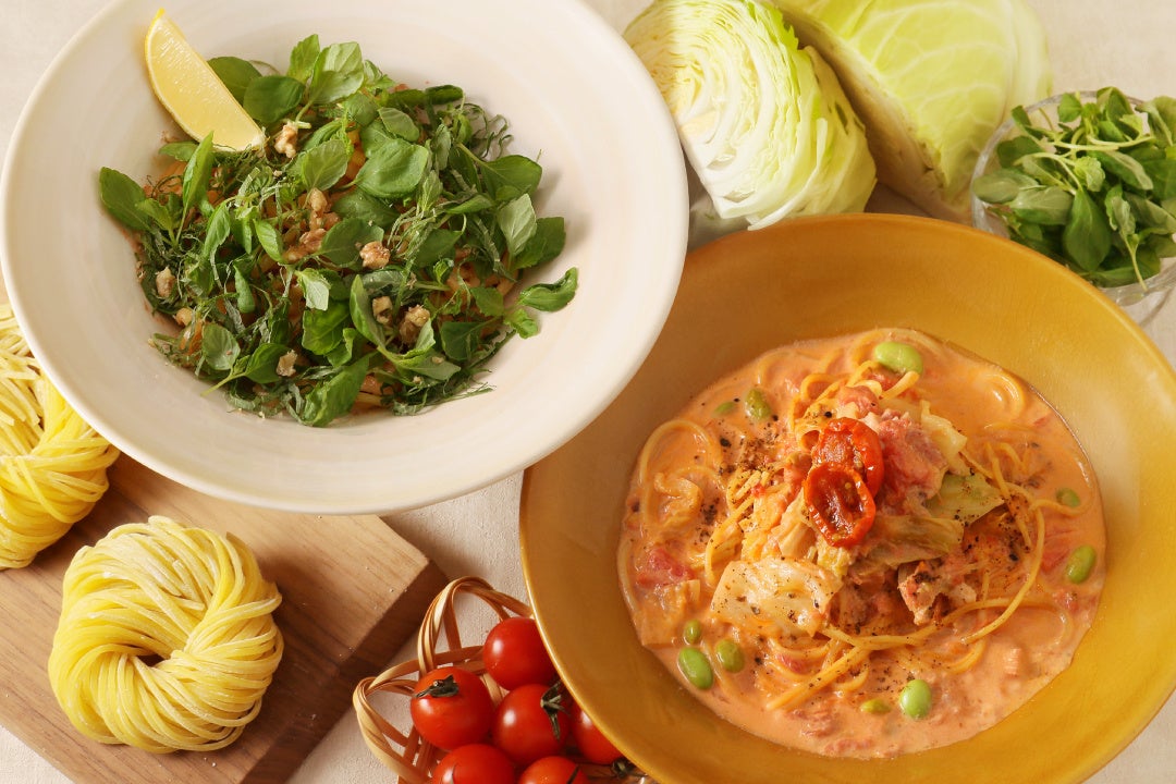こななでは、3/5より「春キャベツとコンポークのトマトクリームパスタ」と「明太バターと大葉畑パスタ」の2種類を期間限定でご提供いたします。
