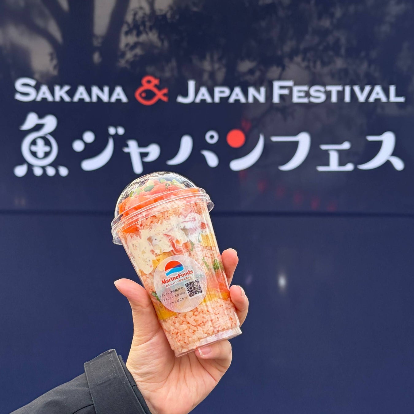 マリンフーズ株式会社(以下「マリンフーズ」)は、2026年2月20日(金)~23日(月・祝)に開催された「SAKANA&JAPAN FESTIVAL (以下「魚ジャパンフェス」) 2026 in 代々木公園」に出店しました。ミルフィーユ寿司・オマール海老のスープ・おつまみサモチーの3品を販売し、計3,703食を売り上げました。