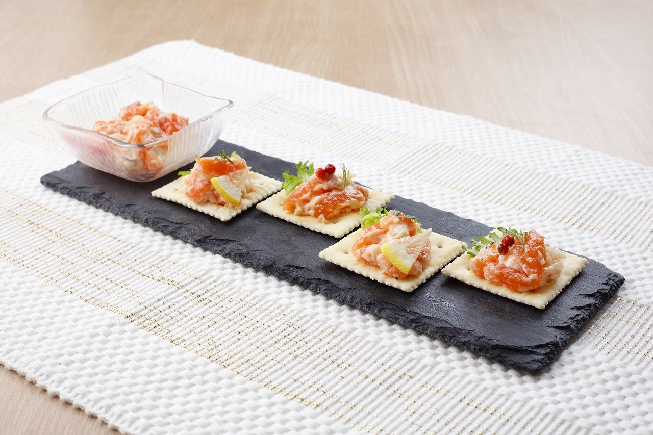 クラッカーをサーモンクリームチーズにディップしてお楽しみいただけるメニューです。