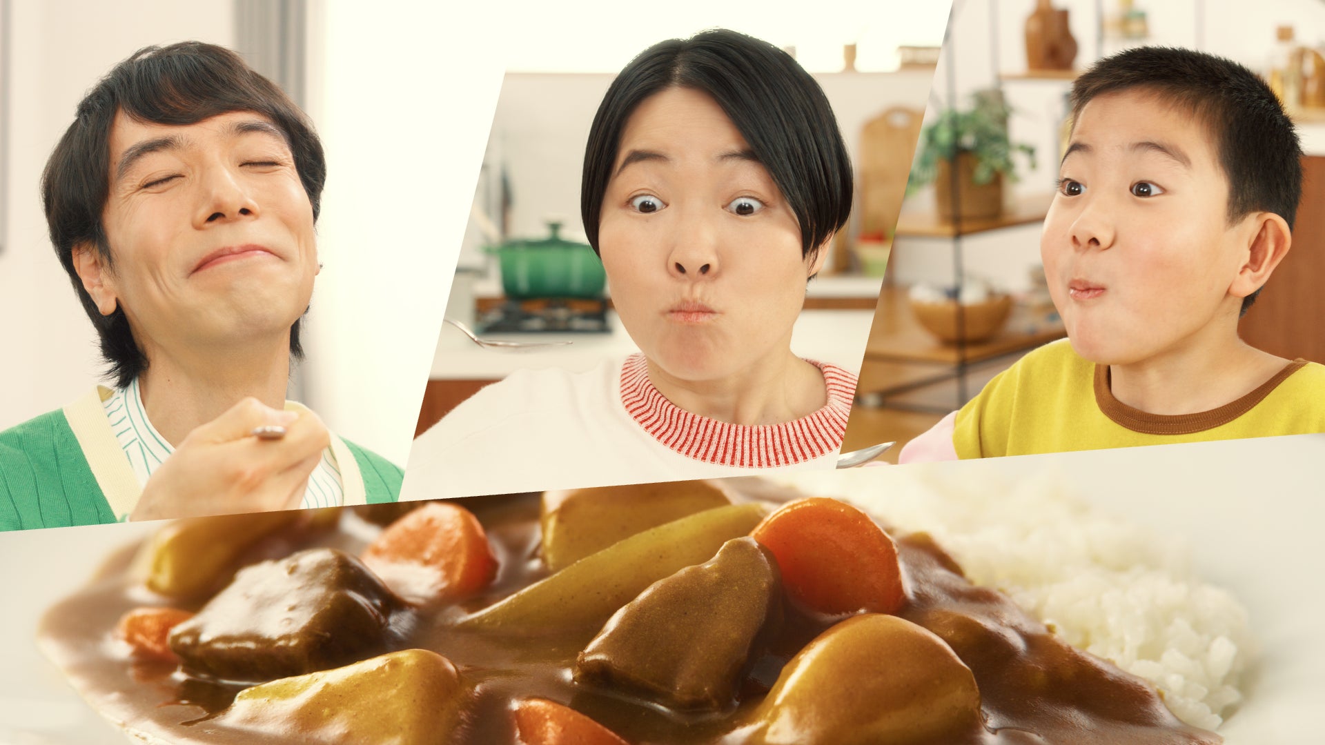 さらに、製品特徴である2つのルウが混ざり合うイメージや、食欲をそそるシズルカットにもこだわり、「こくまろ」のおいしさが視覚的にも伝わる内容に仕上げました。家族みんなで味わう、温かい家庭的な雰囲気で、こくまろの魅力を存分に感じられるCMです。