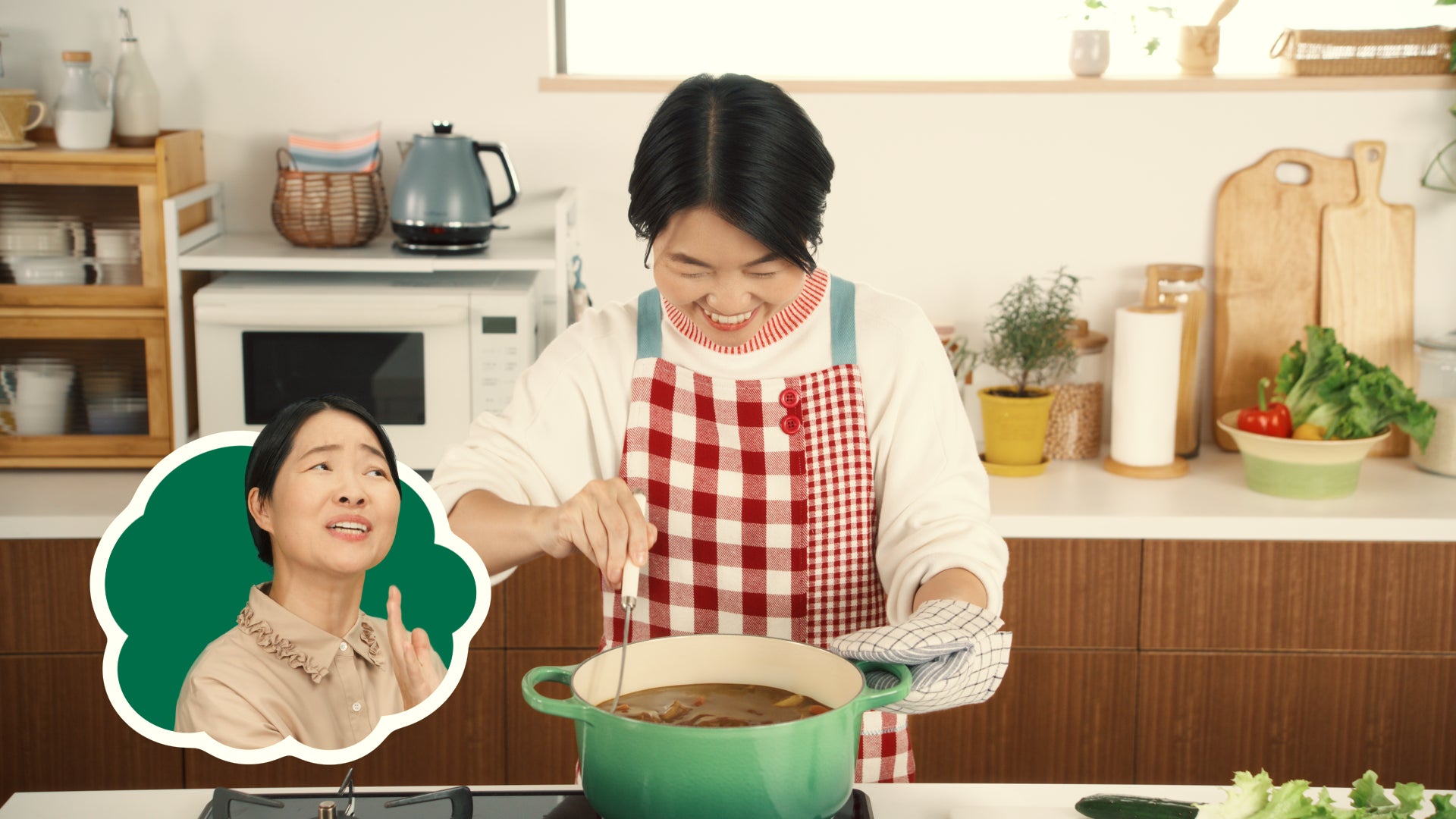 「名前通りのおいしさです。」というメッセージに視聴者が自然と納得できるよう、本CMでは「こくまろ」ならではの“コク”と“まろやかさ”を丁寧に訴求しています。家族のためにカレーを作るイモトアヤコさんが、こくまろへの期待感・高まる気持ちをセルフ実況することで、日常の調理・食卓シーンを楽しく印象的に表現。