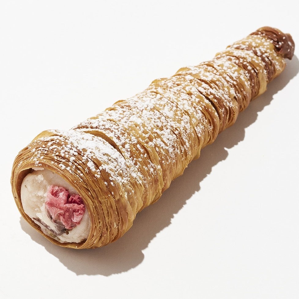 クロワッサンを筒状にした生地にさくら餡ホイップを絞りました。