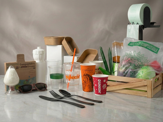 同社製品は、完全生分解を前提として、使用環境や用途に応じて素材配合や厚みを設計できる点を特長としています。紙コップ、透明カップ、ストロー、カトラリー、その他包装資材など幅広い製品ラインアップを有し、使用後は分別や洗浄を行わず、そのまま堆肥化処理が可能です。