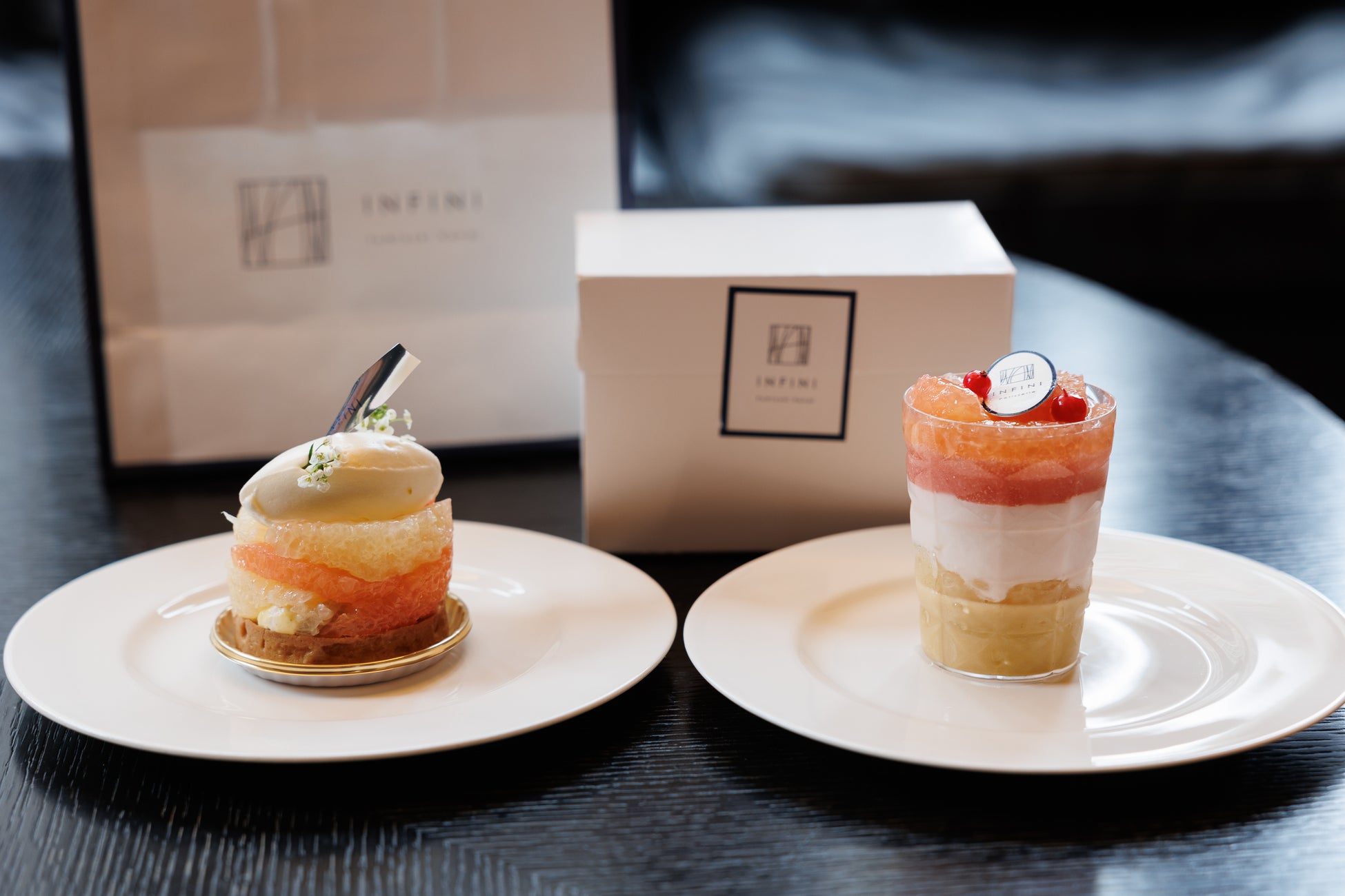 ルビー色の果肉が放つ透明感と輝きを最大限に引き出す構成で、