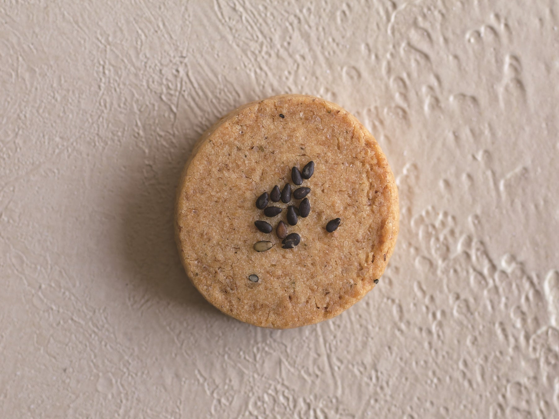 練り胡麻と黒胡麻、2種の胡麻を練りこんで香ばしく焼き上げました。ほろほろとした軽い食感のクッキーです。