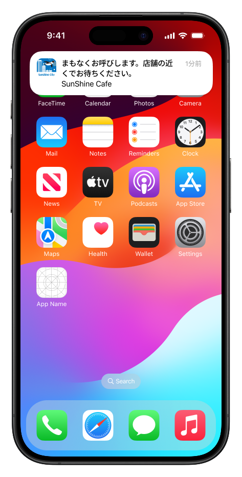順番待ち予約後は予約状況をリアルタイムに確認することができ、順番が近くなったらプッシュ通知でお知らせするため、お買い物やレジャーを楽しみながら、順番待ちすることができます。