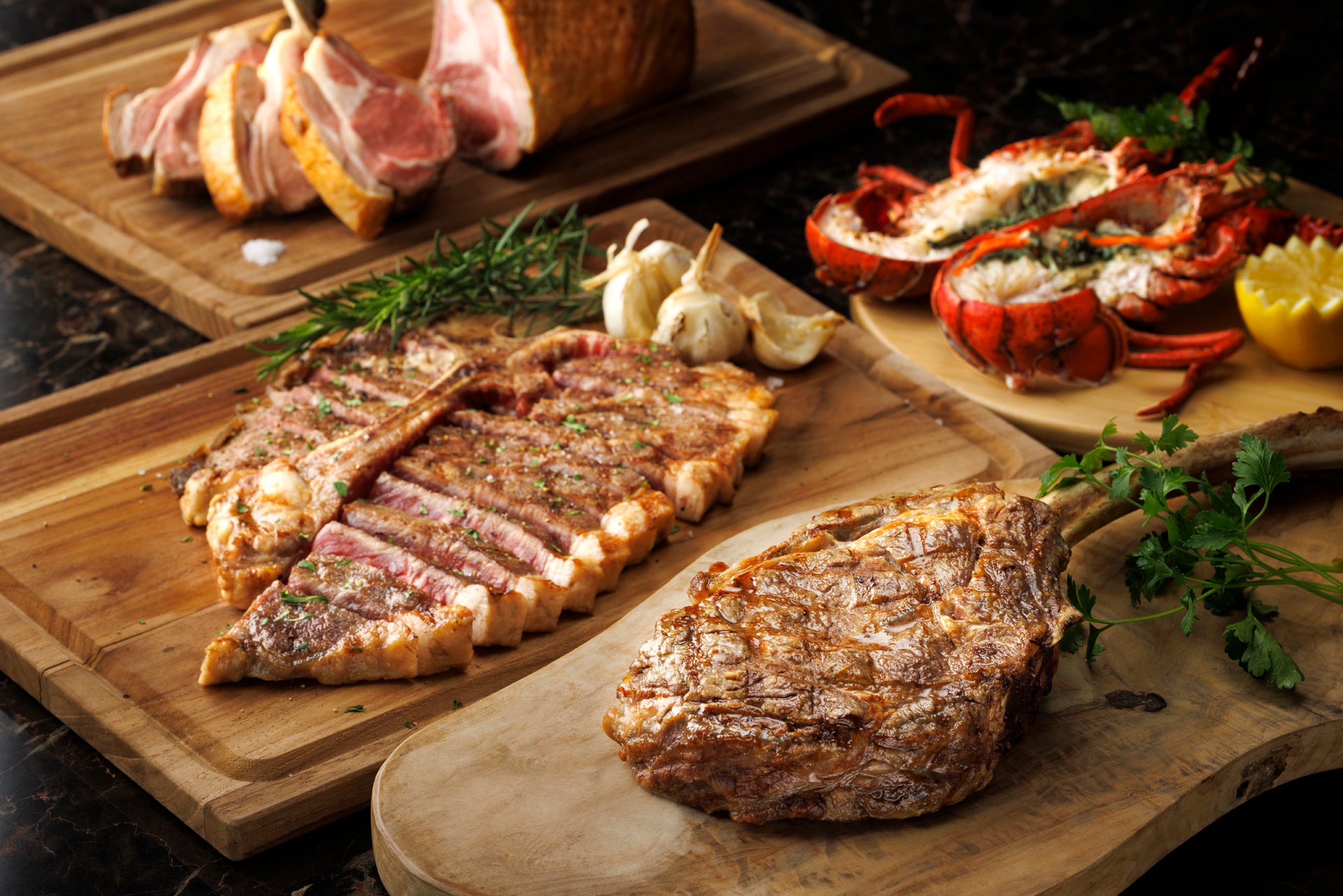 Tボーンステーキや活オマール海老など、事前予約制で提供する限定メニュー(※当日の追加注文は承っておりません。)