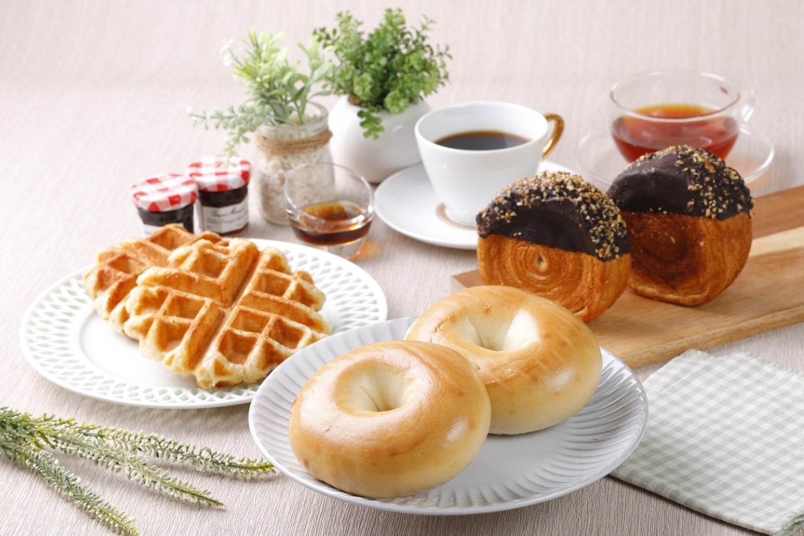 当店のベーグルは低温で長時間発酵させ、薪窯で焼き上げることで独特のもちもち食感を実現しています。ベーグル以外にも、クロワッサンワッフルやクロワッサンロールなど、進化系クロワッサンスイーツなどもご用意しております。