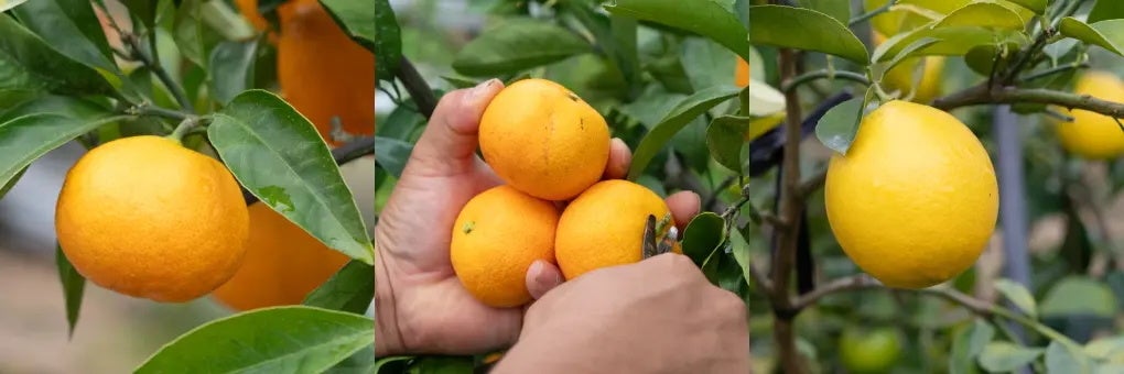 ゼロイチふぁ〜むでは、季節ごとに異なる品種のみかんを栽培しています。早い時期に出回る極早生みかん(青切り)は、外皮は青みが残るものの中身はしっかりジューシーで爽やかな酸味が楽しめます。続く早生みかんは甘みと酸味のバランスが絶妙で、木なり完熟ならではの濃い味わいが特徴です。品種や時期によって味わいが変わるので、一年を通じて様々なみかんの表情を楽しめるのも魅力の一つです。
