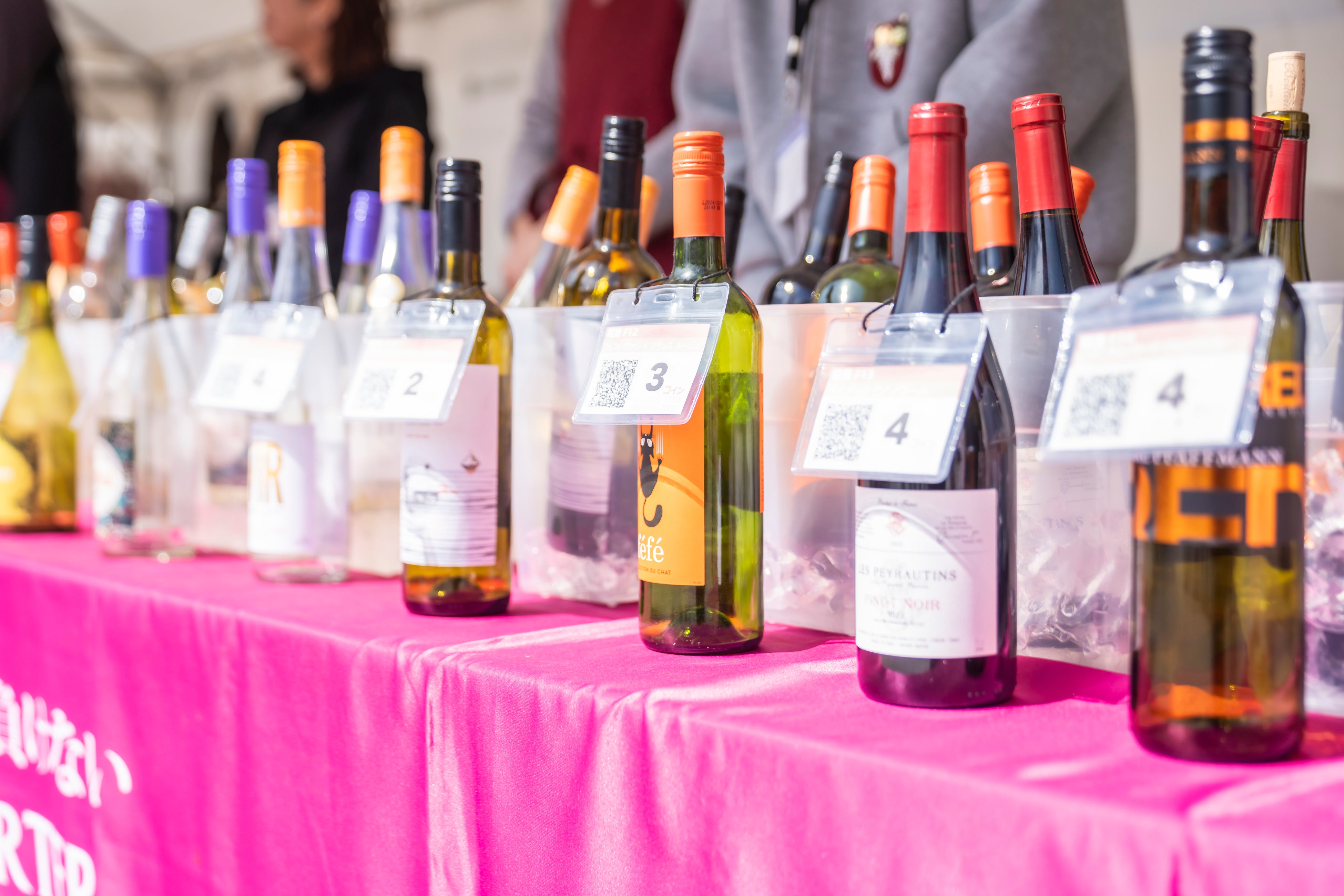 ・飲食用コインと引き換えて、ワインやおつまみを購入できます。