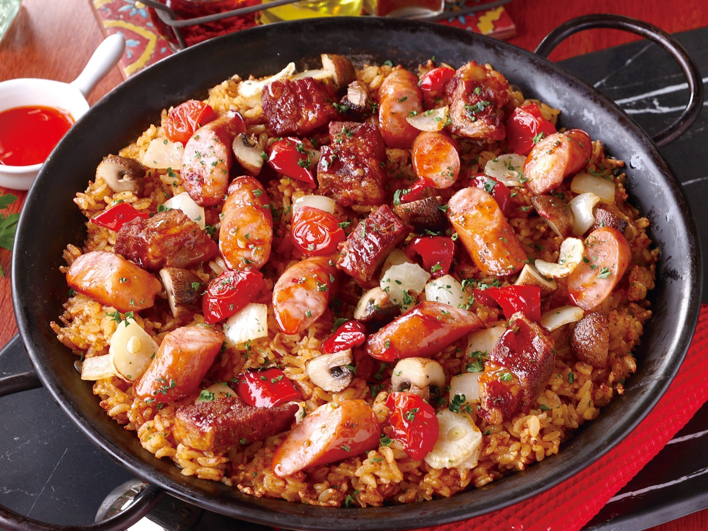 『ステーキとチョリソーの旨辛パエリア』は、ごろっと存在感のあるビーフステーキと、ほどよい辛さがクセになるチョリソーをたっぷり使用した、食べ応え抜群の一品です。