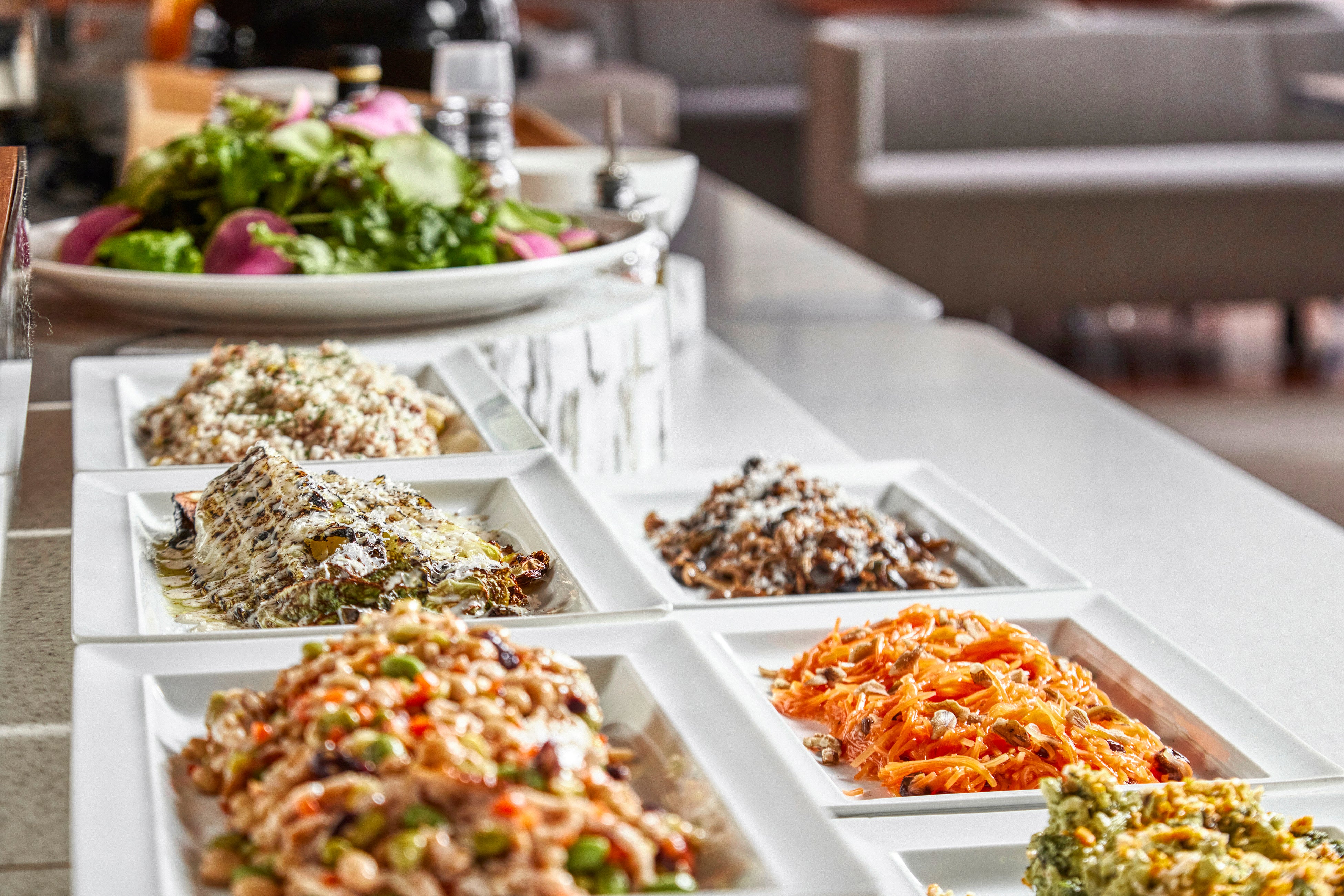 1階のカフェレストラン『GARDEN BITES』のランチは、「選べるメインプレート」に、数種類のサラダデリやホテル自慢の焼きたてパン、カレーなどが食べ放題のビュッフェ付き。開業以来、多くの地域の皆様にご利用いただいています。