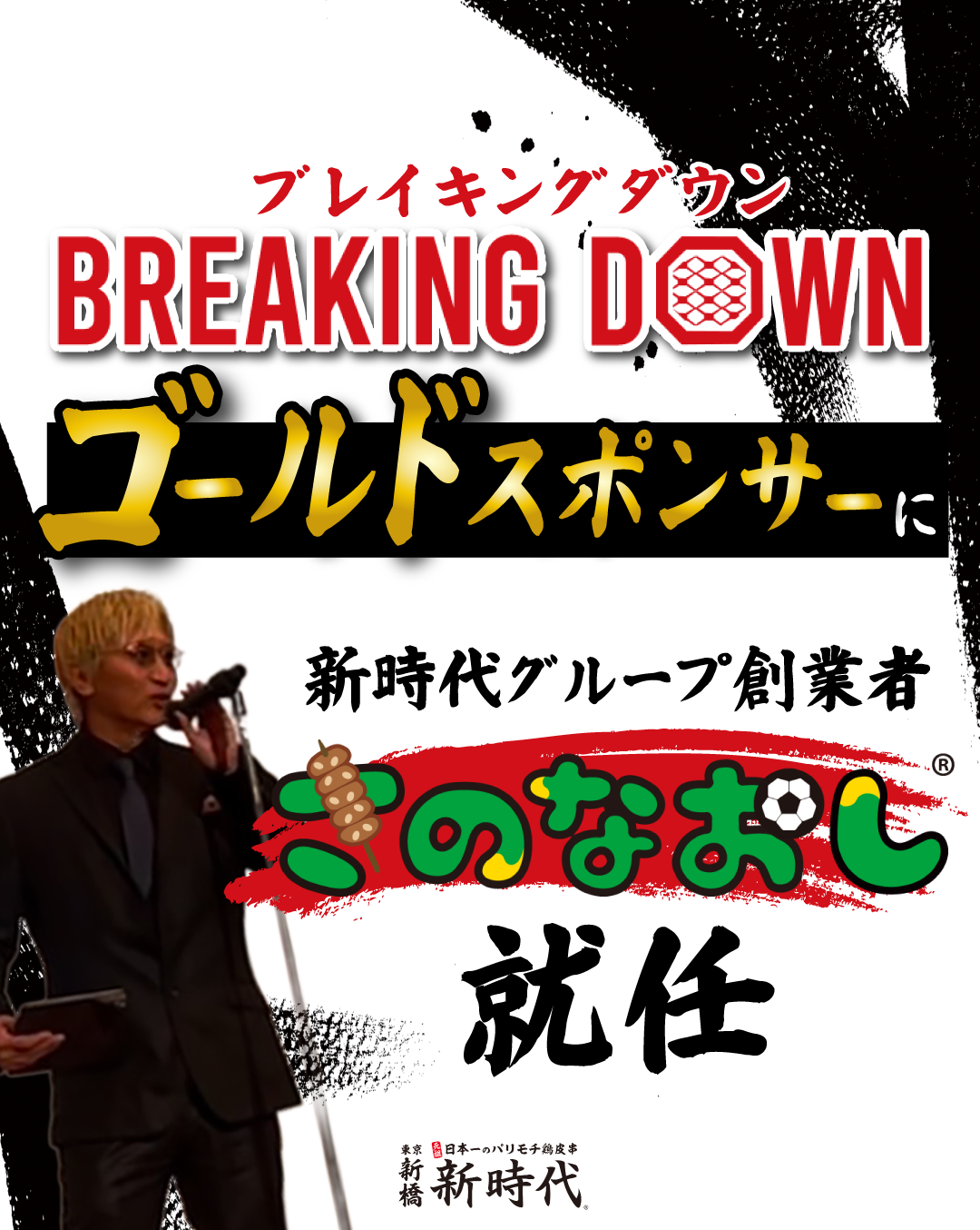 「居酒屋新時代」は、BreakingDownゴールドスポンサーに就任いたしました。 Breaking Down が持つ「挑む姿勢」に我々は強い共感を抱いた。