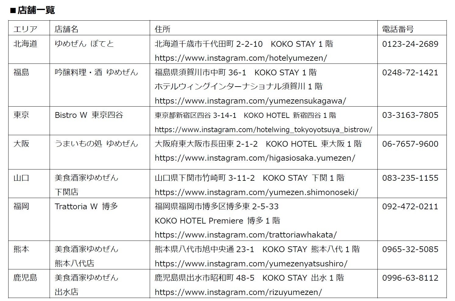 ― グループ直営レストラン・居酒屋 全国8店舗で開催 ―
