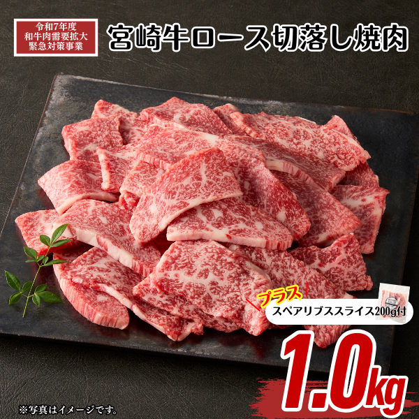 【畜産農家応援】宮崎牛ロース切落し焼肉1kg(スペアリブスライス付)