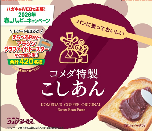 株式会社遠藤製餡(本社:東京都豊島区、代表取締役:遠藤岳)は、2026年3月1日より「コメダ特製小倉あん ・ こしあん ハッピーキャンペーン2026」を期間限定で開催します。