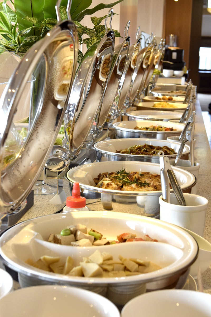 春本番を迎え いちごの収穫も最盛期!その”いちご”を使ったホテルデザートは10種類以上をご用意。会場では、シェフが一皿ずつその場で調理する”鉄板焼きフレンチトースト” や目の前でカッティングしてご提供する”ローストビーフ”そして旬食材のメニューも多数揃います。そのほかにも、新鮮野菜のサラダバー、ホテル名物のオリジナルカレーなど軽食メニューもご用意しております。