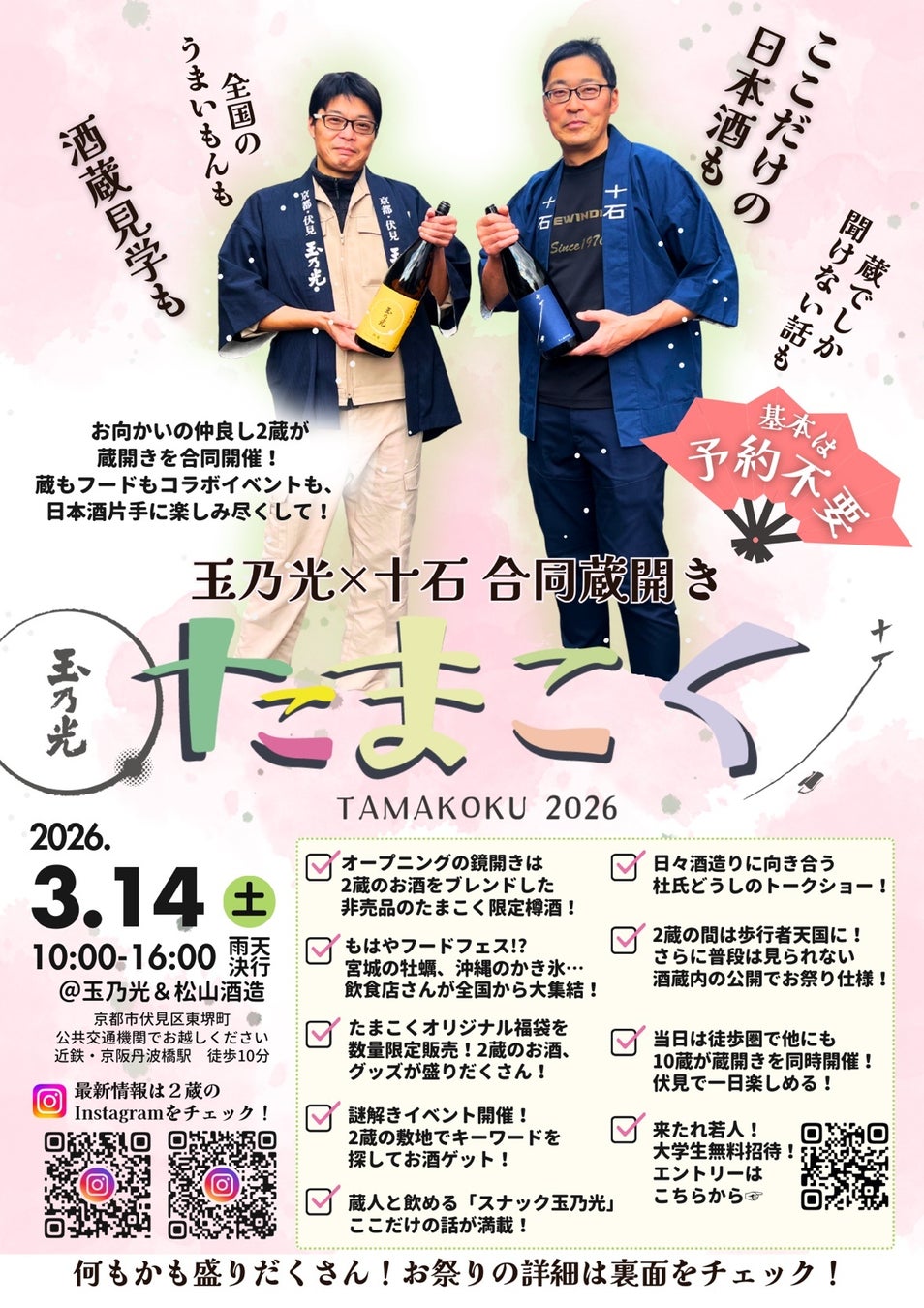 2026年3月14日(土)に開催される、玉乃光酒造と松山酒造による合同蔵開きイベント「たまこく2026」にて、本シリーズをお披露目・販売いたします。ぜひ会場で実際に手に取り、その味わいとアートの融合をご体感ください。