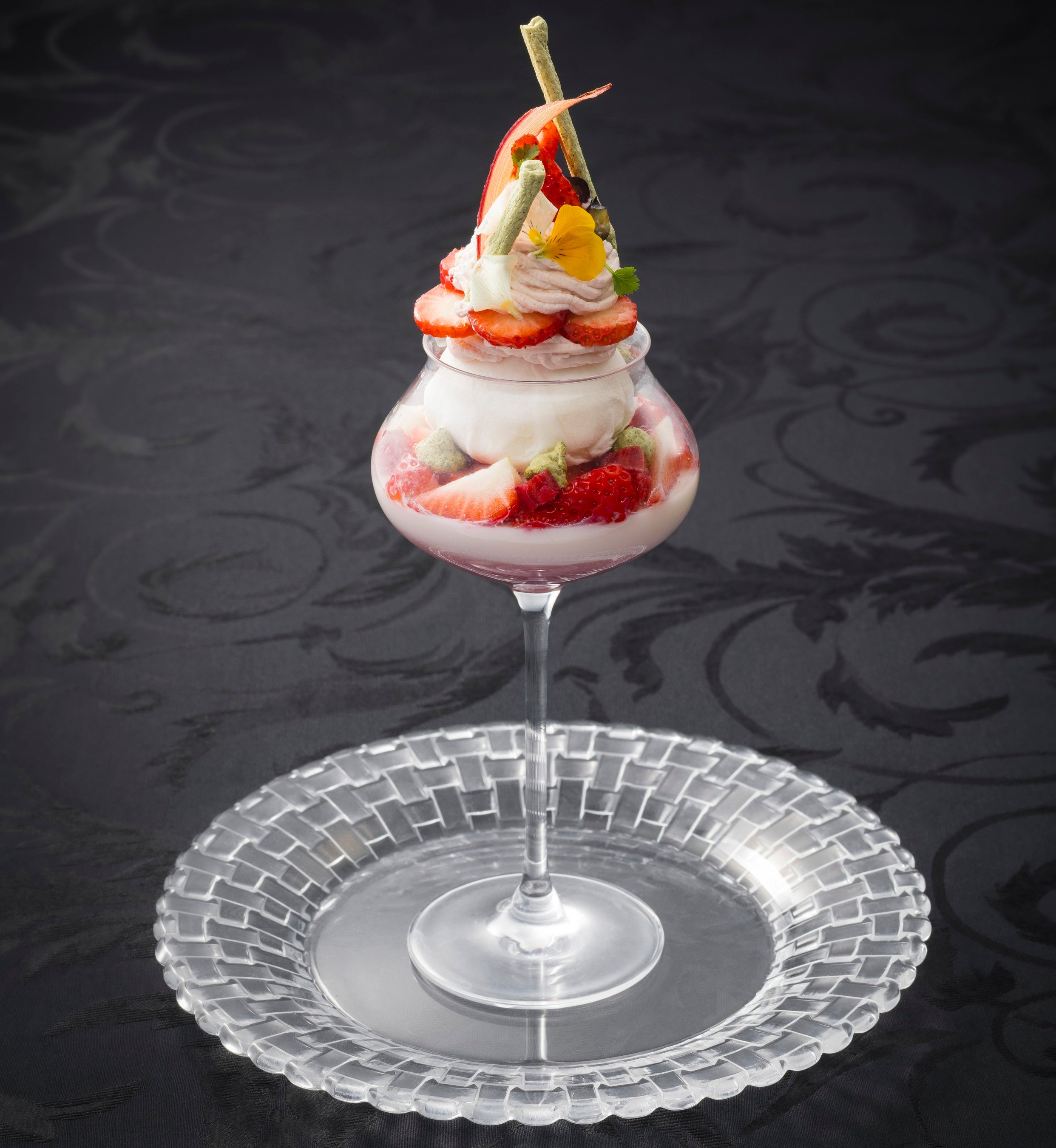 春の訪れを告げる苺を主役に、中国料理が育んできた素材と香りのエッセンスを幾重にも重ねた、華やぎと奥行きを湛える中華風パフェです。