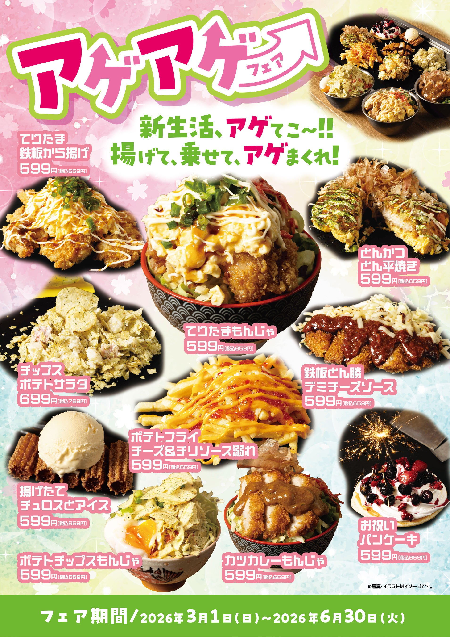 全国で飲食店を展開する株式会社FS.shakeが運営する「もんじゃ酒場だしや・鉄板焼き酒場だしや」は、2026年3月1日より、新生活シーズンを盛り上げる期間限定フェア『アゲアゲフェア』を開催いたします。