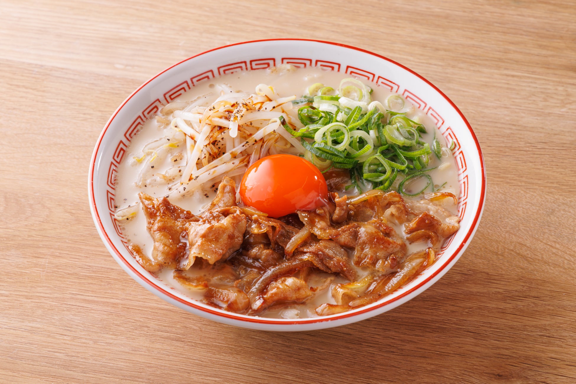 濃厚豚骨に国産鶏ガラと野菜の旨みを重ねた特製ブレンドスープ。つるもち食感の特注麺に、豚大学秘伝のタレで焼き上げた豚肉を豪快にのせ、中央にはとろ~りたまご。濃厚な旨みを存分に楽しめる一杯です。