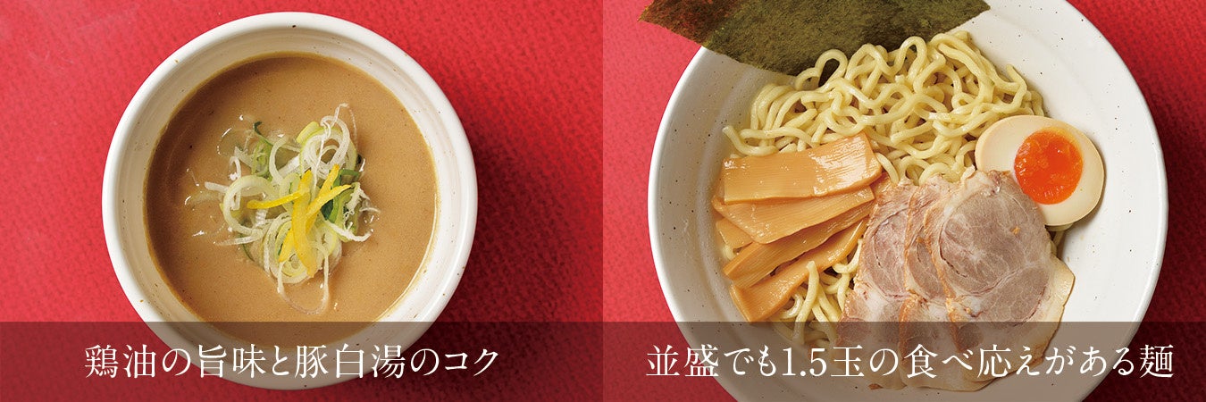 鶏のキレのある旨みに、豚白湯の濃厚でクリーミーなコクを重ねることで、奥行きのある濃厚スープを実現しました。