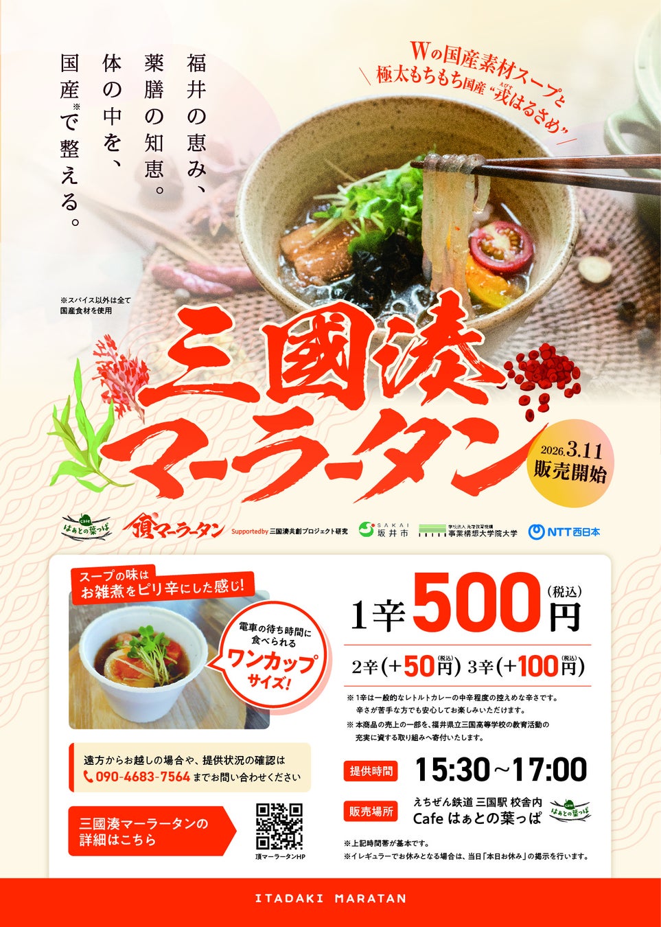 「三国湊共創プロジェクト研究」を通じて、三国駅前にマーラータン店を出店する企画が実現することを、心より嬉しく思います。