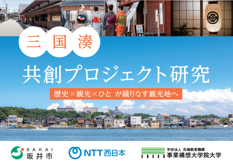 本プロジェクトは、坂井市、事業構想大学院大学、NTT西日本が連携し、地域が有する歴史や文化を生かしながら、地域課題の解決と新たな価値創出をめざす取り組みです。