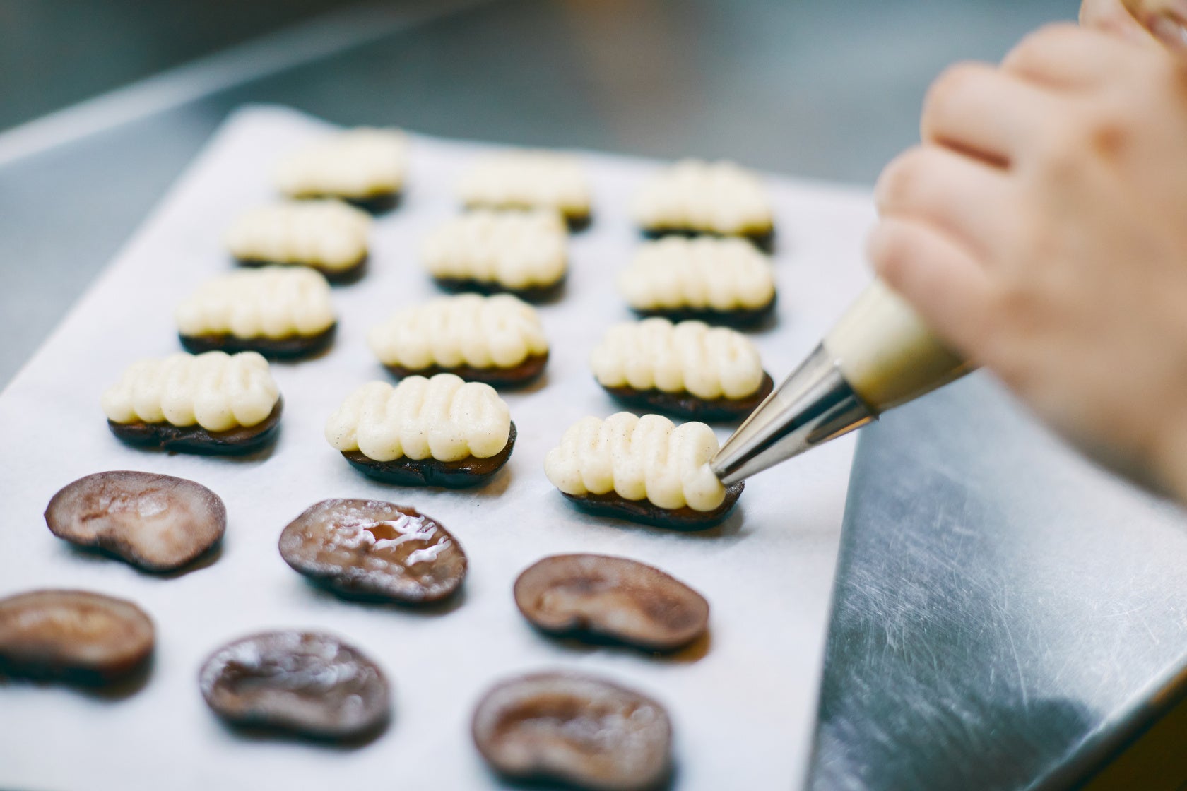 花豆は他のお豆に比べて粒がとても大きく、とてもおいしい魅力的な食材です。しかし、あまり知られておらず、甘煮や羊羹といった和菓子の印象が強いため、これまで限られた地域や人にしか親しまれてきませんでした。そんな花豆の美味しさをもっと多くの方に届けたいという思いから、見た目のキャッチーさと、誰にでも食べやすい味わいのバランスにこだわり、アイス花豆サンドウィッチを完成させました。