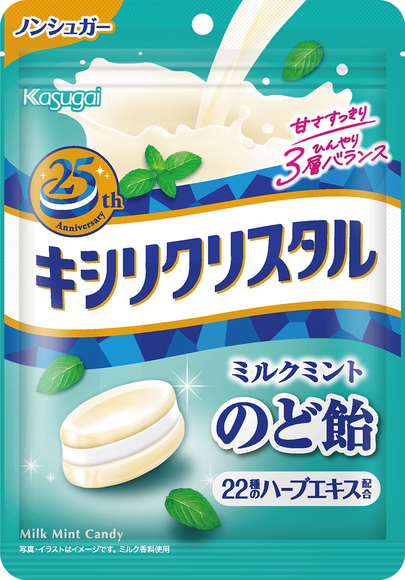 日本で初めてキシリトールをキャンディにして発売した「キシリクリスタル」は、たくさんのお客様にご支持いただき今年で発売25周年を迎えます。2001年の発売当時、3層の見た目やキシリトール層のひんやり、そして今では定番の「ミルクミント」という味わいは大変目新しく、話題になりました。現在のレギュラー品「ミルクミントのど飴」「フルーツアソートのど飴」の他にも、これまで期間限定商品を数多く発売し、その時代のお客様のニーズに合わせた商品づくりを続けています。