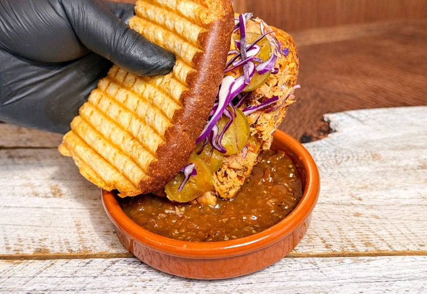 フレンチディップサンドイッチとは、サンドイッチをたっぷりのグレービーソース(肉汁のソース)に浸して食べる、ロサンジェルス発祥のサンドイッチ。今春は6時間じっくり低温でホロホロになるまで柔らかくローストし、薪火で仕上げたジューシーなプルドポークを贅沢に使用。目の前で熱々に焼き上げたホットサンドイッチをたっぷりのグレービーソースに浸してお楽しみください。