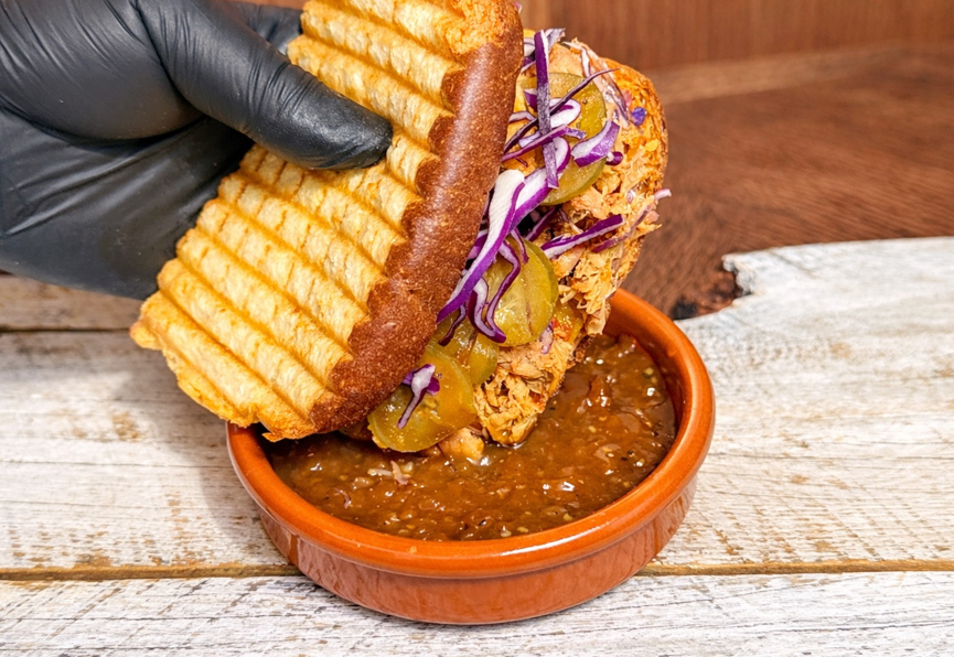 プルドポークのフレンチディップホットサンド