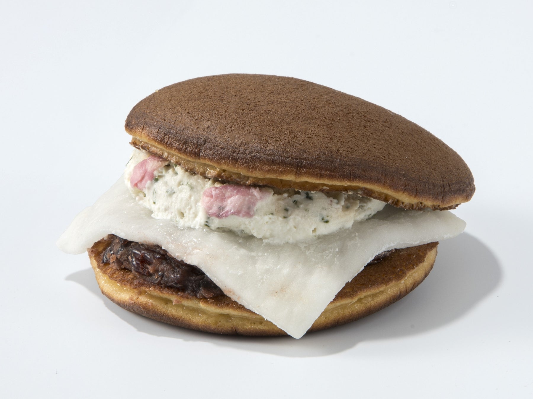 桜花と桜葉の塩漬けを使用した甘塩っぱい桜クリームに、北海道十勝産あずきとやわらかなお餅を重ねて包みました。まるで桜餅のような味わいが広がる、春限定の生どらやきです。