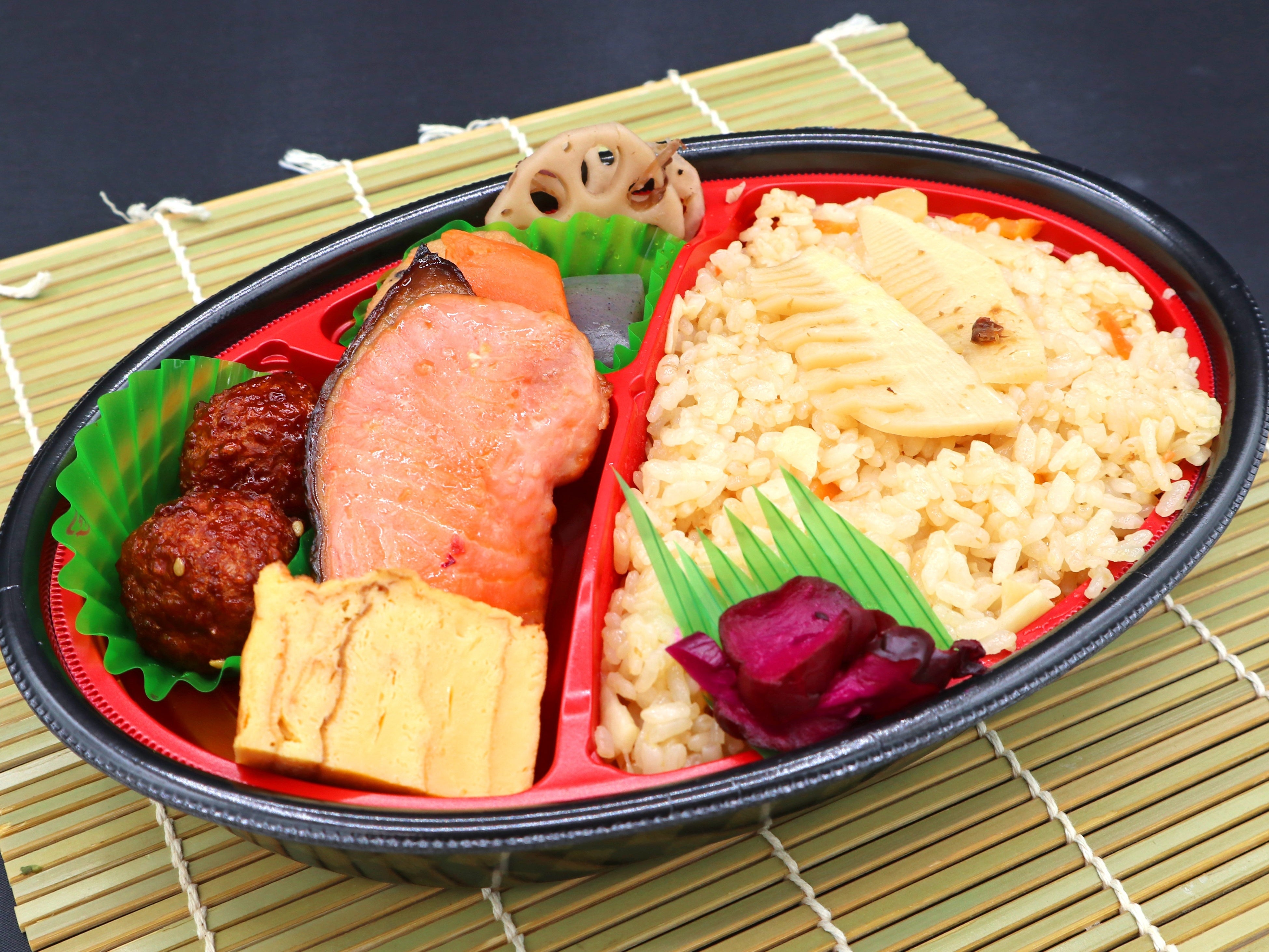 旬の筍を炊き込んだ香り高いごはんに、芳醇な西京味噌で丁寧に焼き上げた青森県産のふっくらなサーモンを合わせました。まろやかな味噌の甘みがサーモンの脂を引き立て、筍の素朴な味わいと相性抜群です。お魚処ならではの目利きが光る、春の恵みを詰め込んだ贅沢な一折です。
