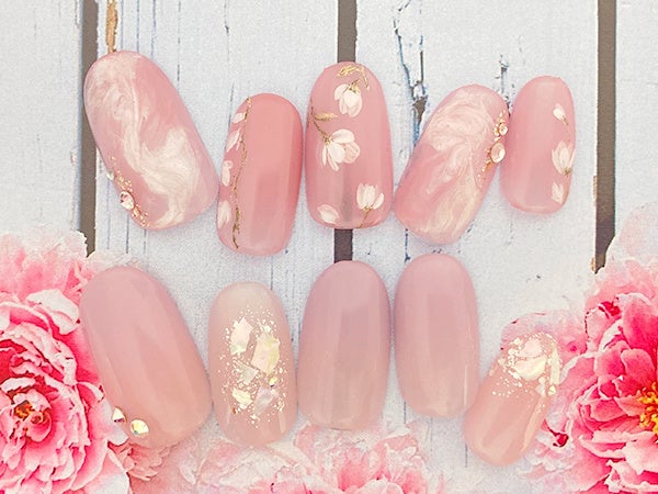 満開になった桜や花びらが舞うようなデザインで指先から春の訪れを演出します。