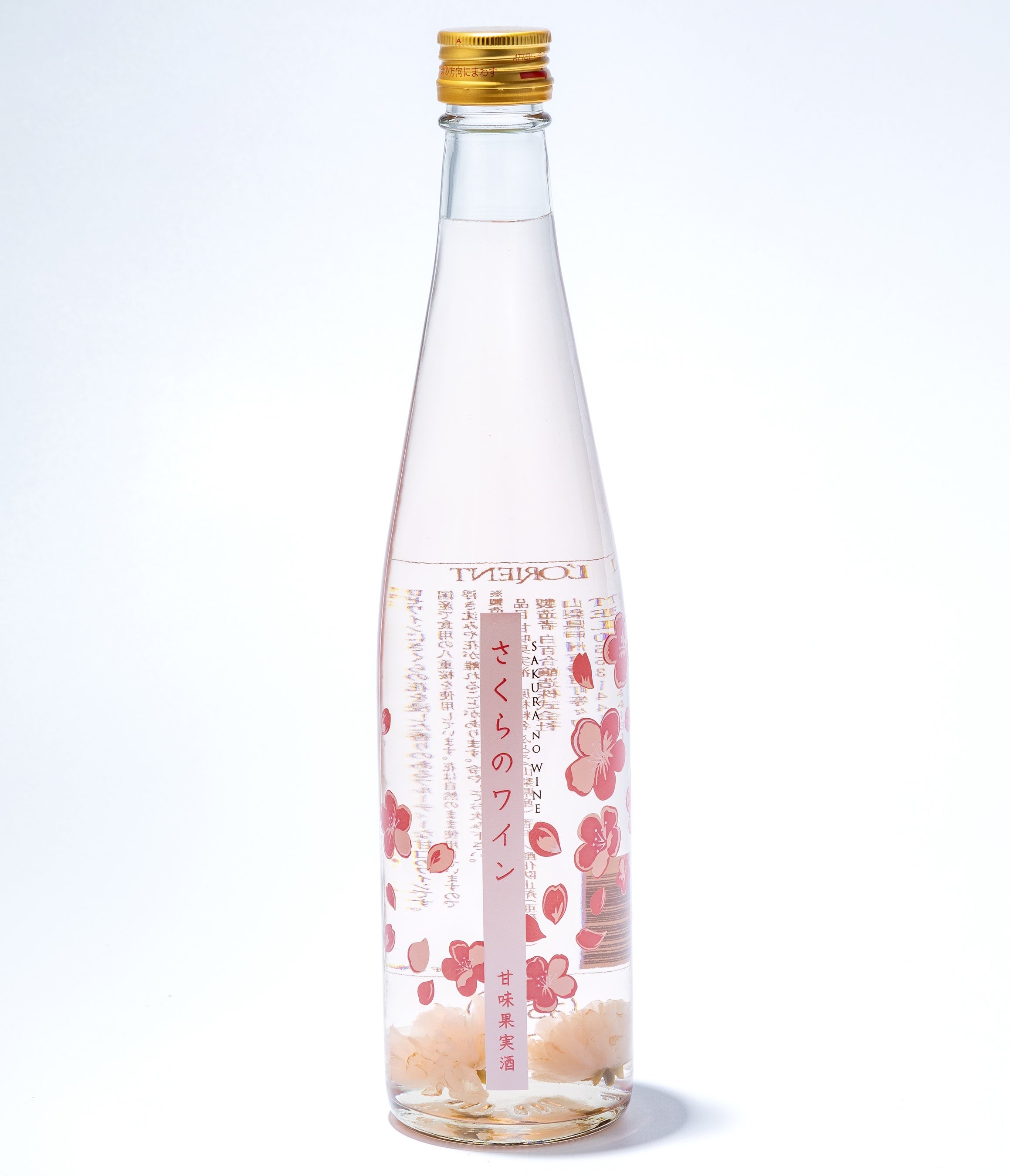 ロゼワインに八重桜の花を浸した香りのあるフルーティーな甘口のワインです。
