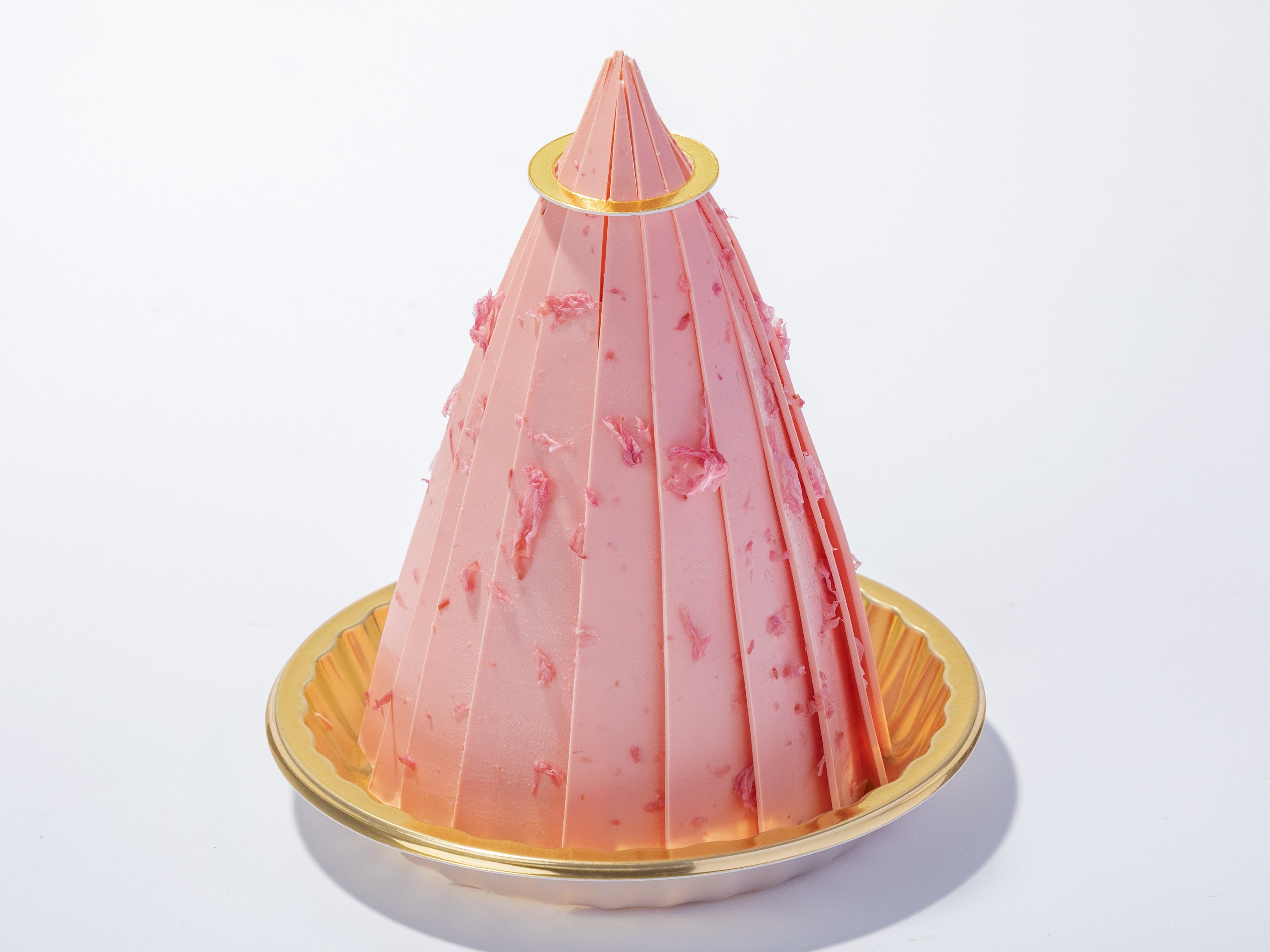 粉をほとんど使わず、卵の優しい風味を生かして焼き上げた、ふんわり軽やかな生地に、特製の桜ペーストを加えたムースリーヌをたっぷり詰めました。やさしい甘さの中にほのかに感じる塩味が桜の香りを引き立て、上にのせたピスタチオがアクセント。春らしい彩りと味わいを楽しめる、上品でやさしい味わいのオムレットです。
