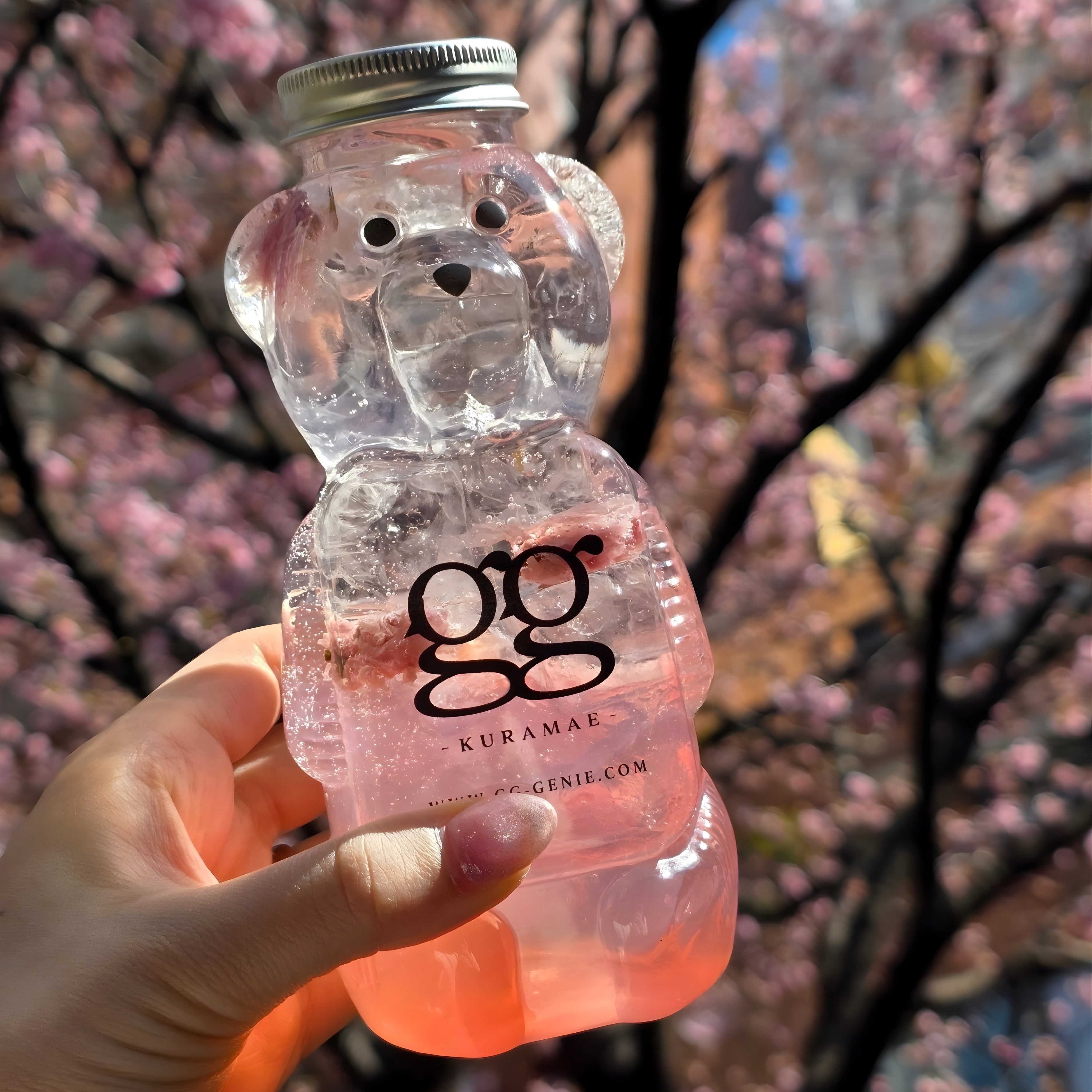 さくらシロップを使った、ほんのりピンク色のぷるぷるゼリーに、アクセントとして桜の塩漬けを添えました。シュワっと爽やかなソーダを注げば、甘さ・塩味・炭酸がバランスよく広がります。ゼリーのぷるぷる感、桜の食感、炭酸のシュワシュワ――いろんな食感が楽しい、見ても楽しい、飲んでも楽しい、春だけのくまボトルドリンクです。