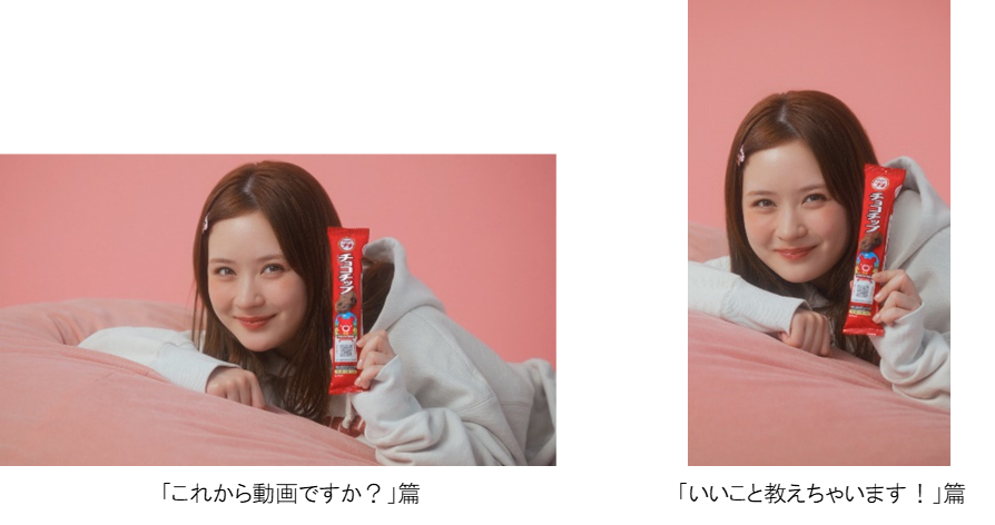 畑 芽育さんがスマートフォンを片手に自宅のリビングを笑顔でスキップしています。向かった先は、プチシリーズが何種類も詰まった畑さんお気に入りのプチシリーズBOX。大好きな「プチチョコチップ」を手に取ると、自分の身体ほどのサイズの巨大なクッションに飛び込みます。そしてスマートフォンを見ながらリラックスした様子で「プチチョコチップ」を食べました。こうした畑さんの自宅でのひとときを描くことで、「プチシリーズがあれば、あなたの自分時間はもっと最高の瞬間になる」というメッセージを込めた内容のCMとなっています。