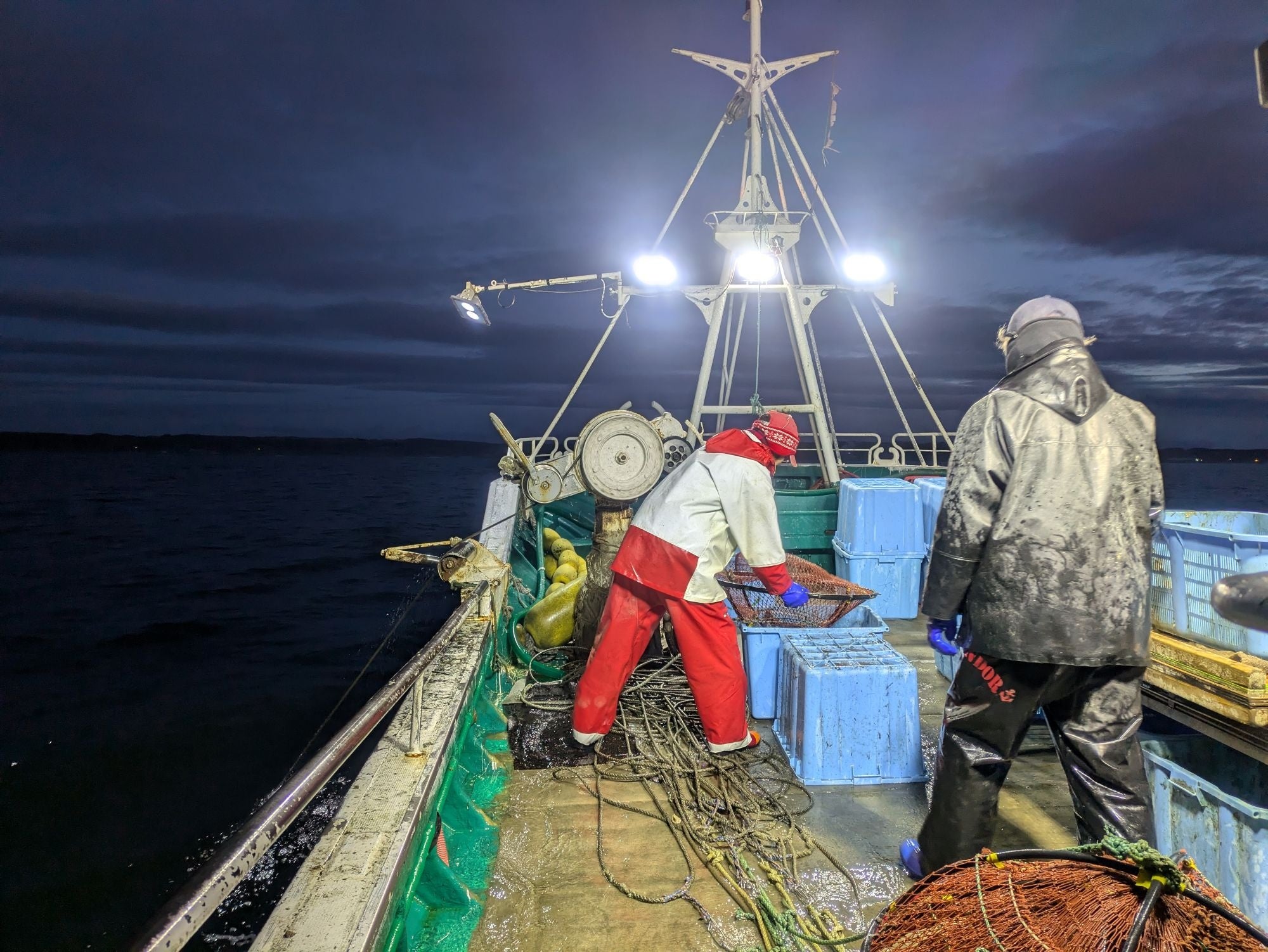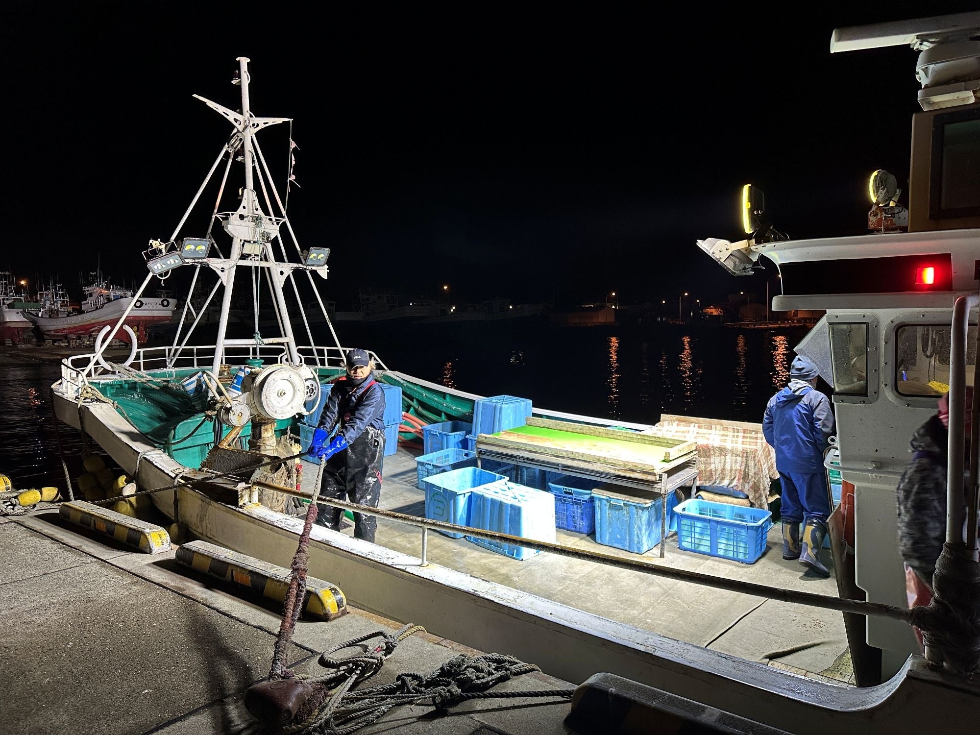 午前3時半、まだ真っ暗な白糠漁港に、エンジン音が響きます。