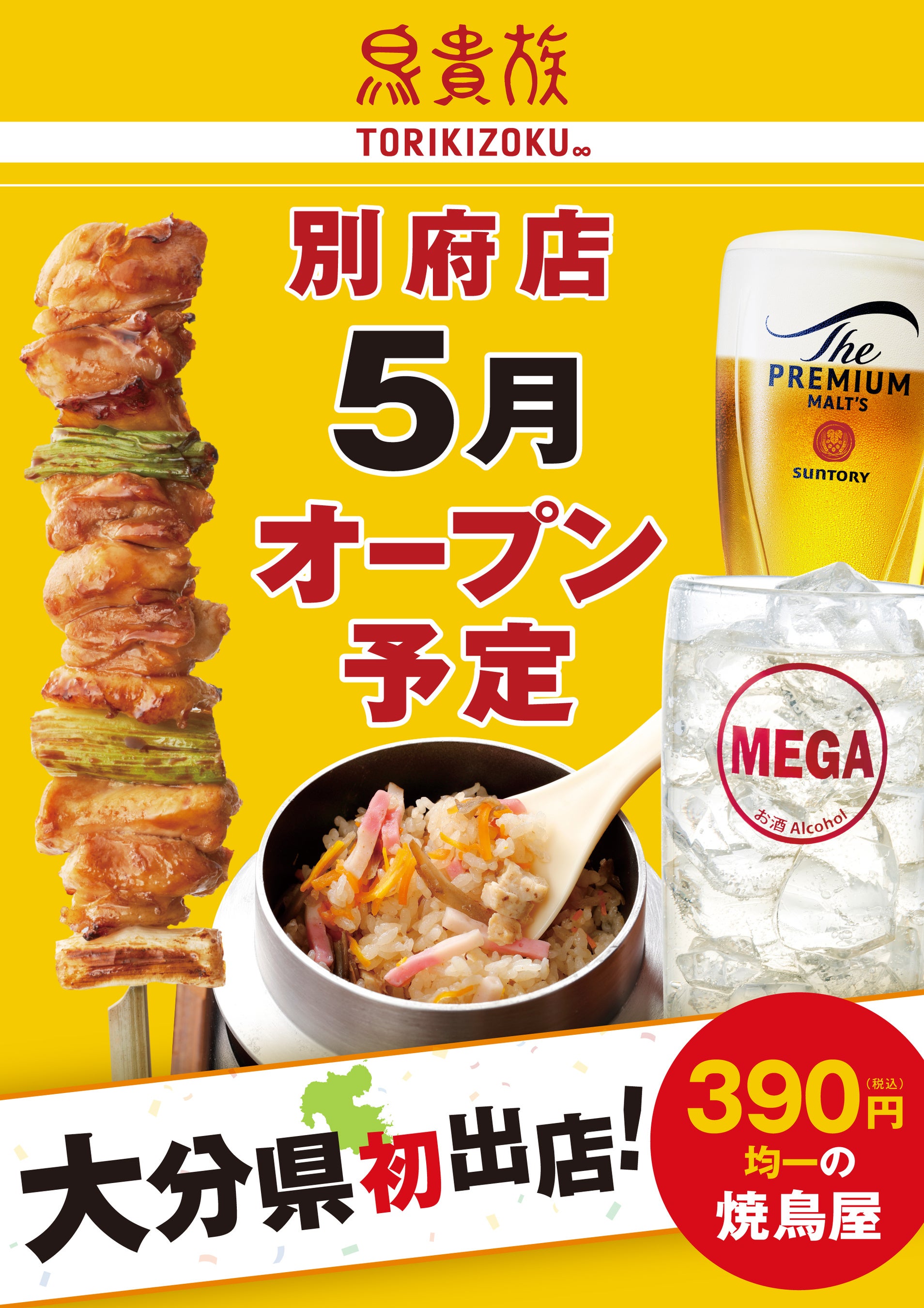 なれるよう、地域に根ざした店舗運営に取り組んでまいります。別府への出店により、別府周辺の皆様に鳥貴族ブランドを知っていただくことで、大分県での出店拡大に繋げていきたいと考えております。