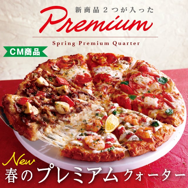 『春のプレミアムクォーター』は、今季の新商品「大海老のシーフードタルタル」と「プライムガーリックビーフ」を主役に、「北海道産マスカルポーネ&熟成サラミ」「フレッシュトマト&バジル」を組み合わせた、華やかさと満足感を兼ね備えたクォーターピザです。香ばしいビーフの存在感、ぷりっと弾ける大海老の贅沢さ。一切れごとに異なる美味しさが広がり、最後まで期待を裏切らない味わいをお楽しみいただけます。お肉も、海老も、主役級の存在感。春だけの特別な美味しさを、一枚に凝縮しました。