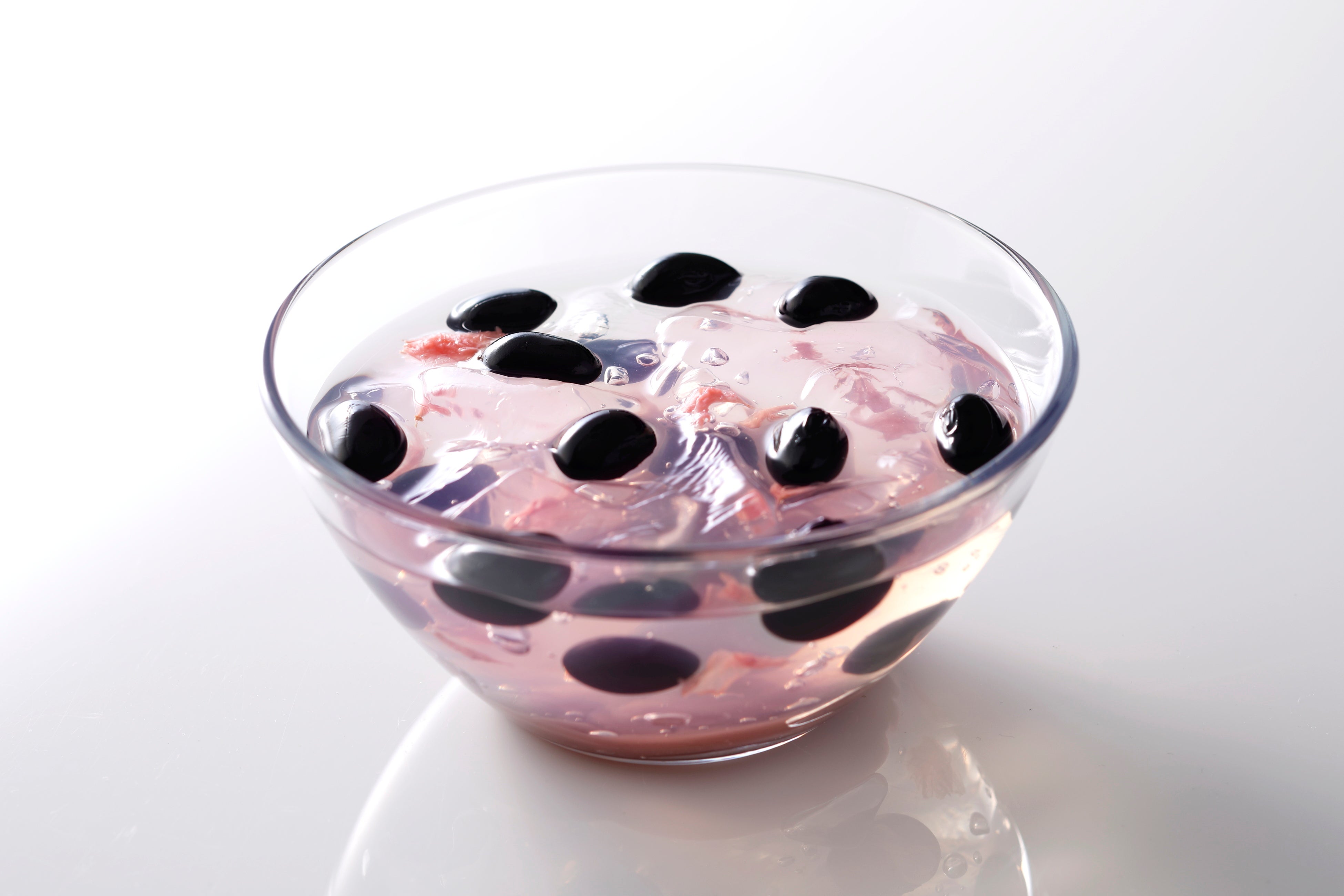 おしるこジュレにやわらかい寒天と可憐なピンク色の桜寒天に、3日間じっくりと煮込んだ丹波黒豆の自家製黒豆を合わせたこだわりの和スイーツです。自家製豆を使用することで、豆本来のふっくらとした食感を引き出しました。素材それぞれのやさしい甘みと奥深い味わいが調和し、さっぱりとした口当たりながらも、上品な味わいが広がる一品に仕上げております。