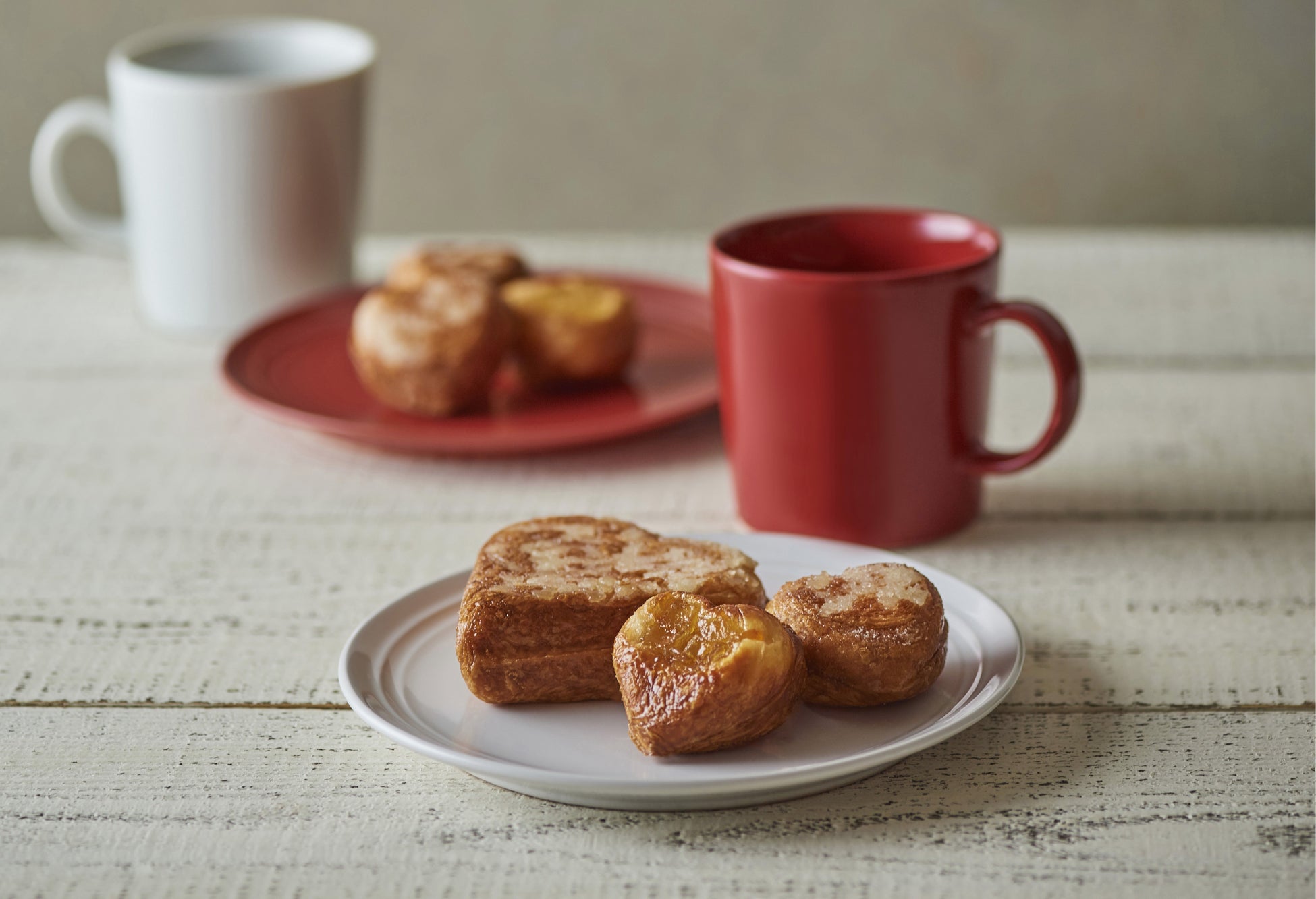 見た目の可愛らしさは、お祝い事やお手土産、毎日のおやつにと、さまざまなシーンにお使いいただけます。ハート形のデニッシュで素敵なひとときを。