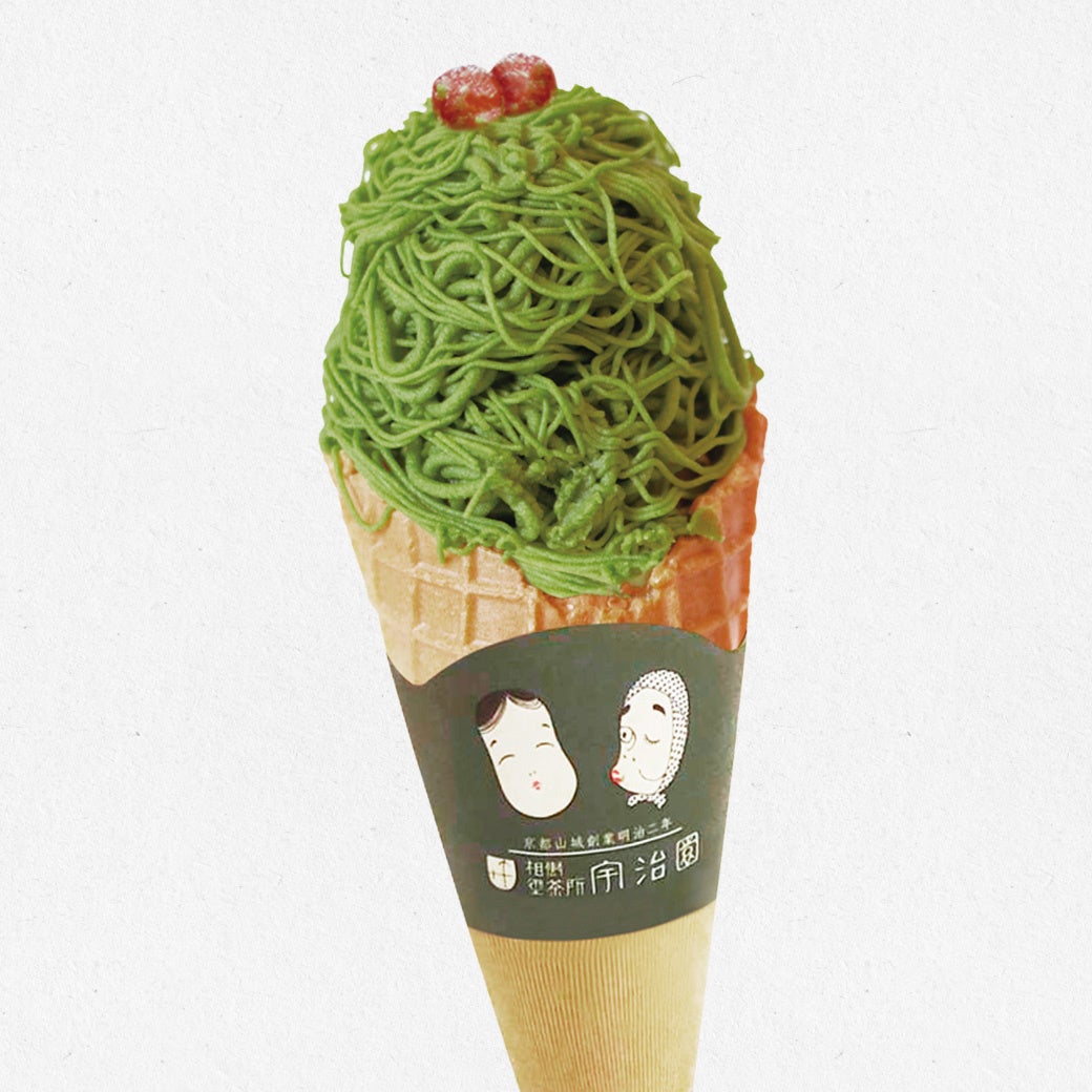 抹茶ソフトクリームにふわふわのモンブランクリームをトッピングしました。