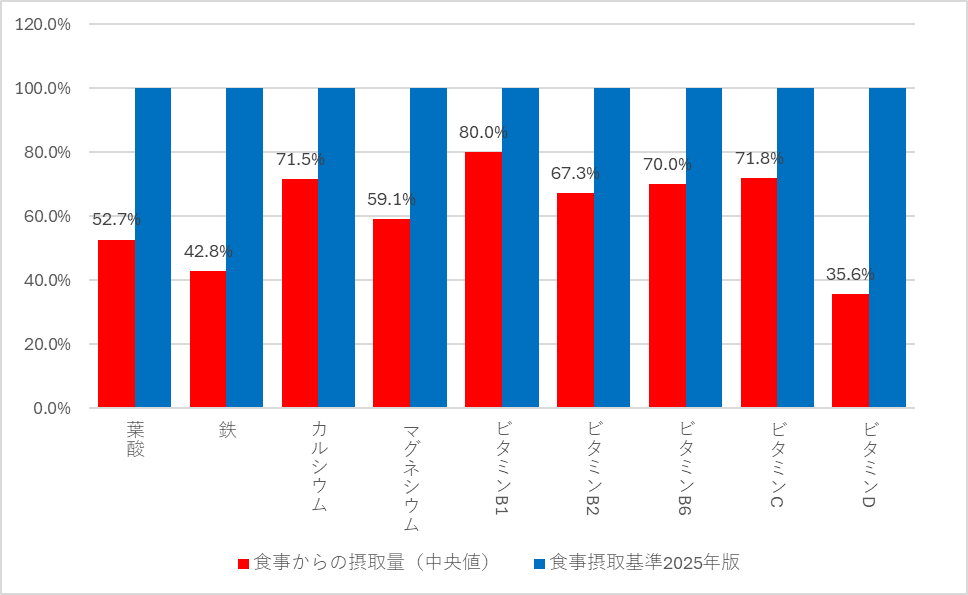 「令和元年国民健康・栄養調査」妊婦の摂取中央値の比較(当社調べ)