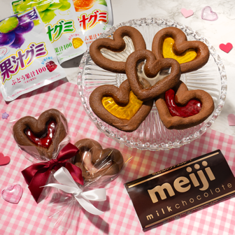 縦型ショート動画「ホワイトデーにチョコっと感謝time♡」では、以下の明治のグミとチョコレートを使ったレシピを紹介します。