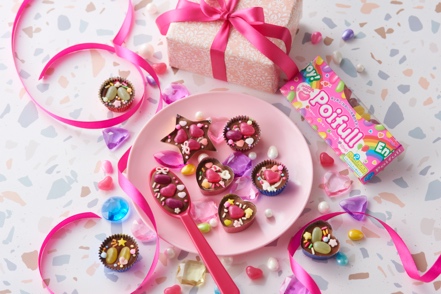 見つけてハッピーなハートポイフルを贅沢にトッピング!ばらまきにも最適な手軽さともらって嬉しい可愛さでハッピーが広がります。