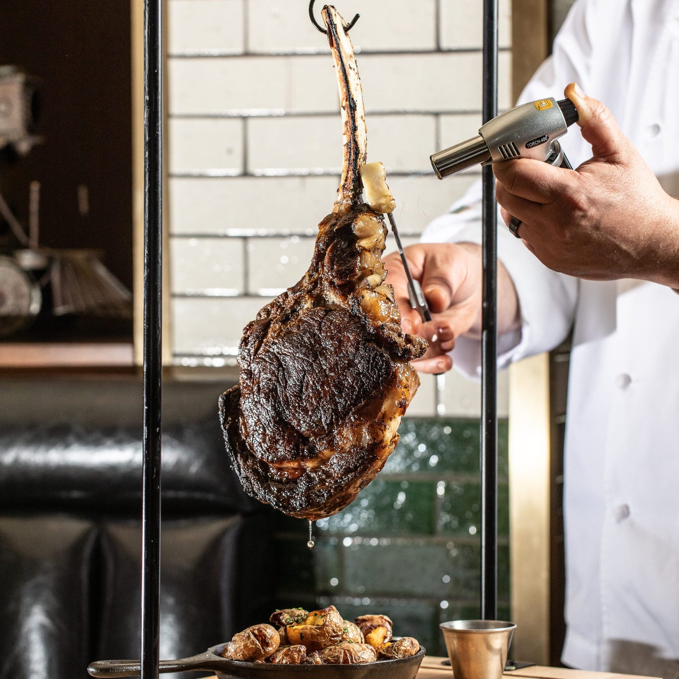 提供されるのは、独自の厳しい基準で選び抜かれた最高峰のステーキ。本場アメリカのドライ・エイジング・ステーキはもちろん、看板メニューの「スウィンギングトマホーク リブアイ」は、吊るされた状態で提供される唯一無二の逸品。これら至高の料理を彩るのは、ソムリエが世界中から厳選した300種近くに及ぶ豊富なワインコレクション。クラシックな銘醸ワインからプライベートブランドまで、完璧なマリアージュを心ゆくまでお楽しみいただけます。