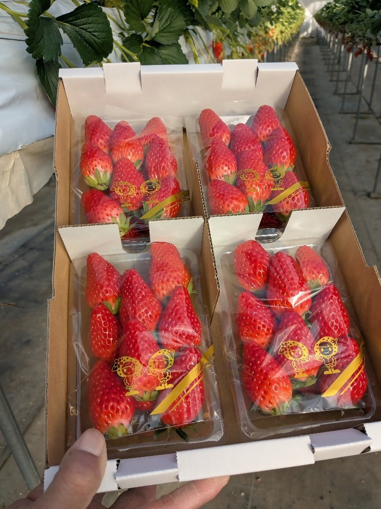 たかぎ村を代表する3種のいちご(長くて甘い「章姫」、適度な酸味の「紅ほっぺ」、